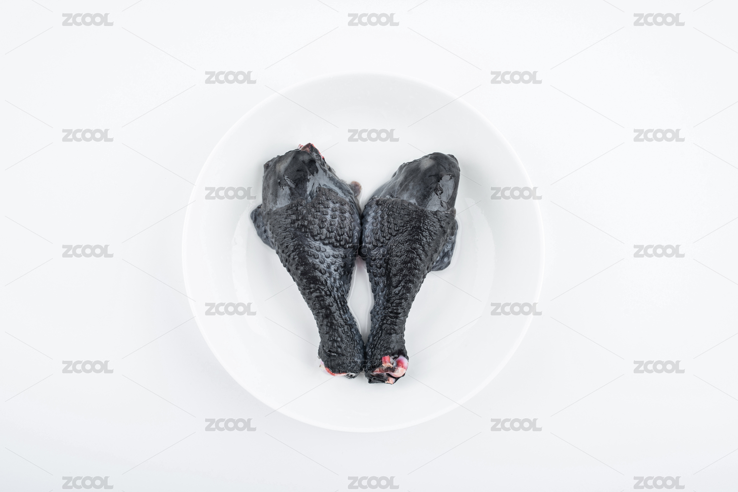白背景上兩只新鮮烏雞腿