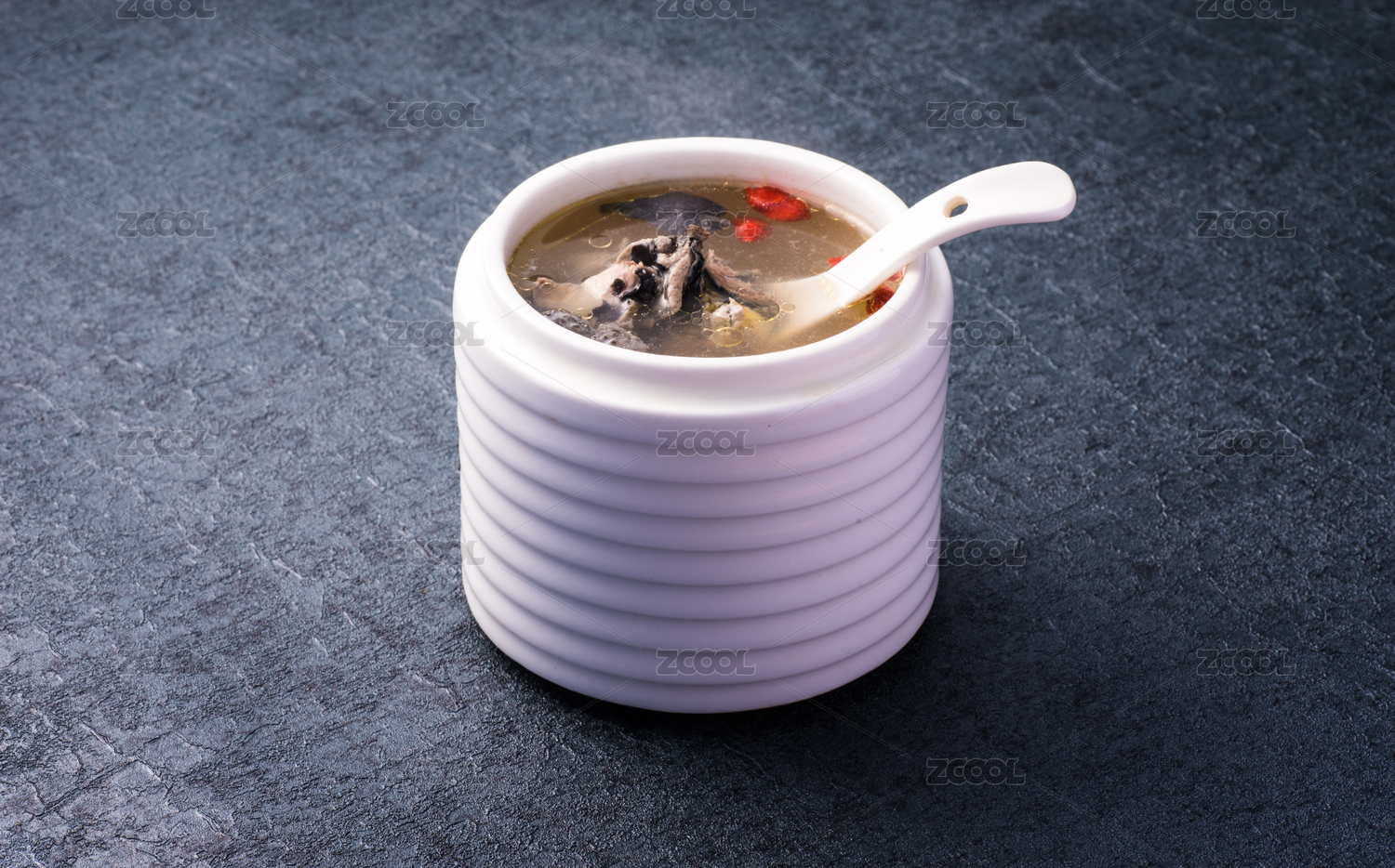 白背景營養(yǎng)燉盅人參紅棗烏雞湯