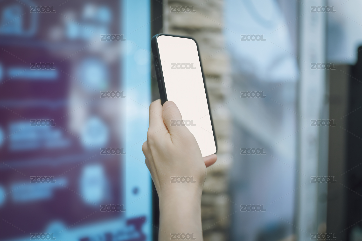 手持智能手機(jī)空白屏幕的手部特寫