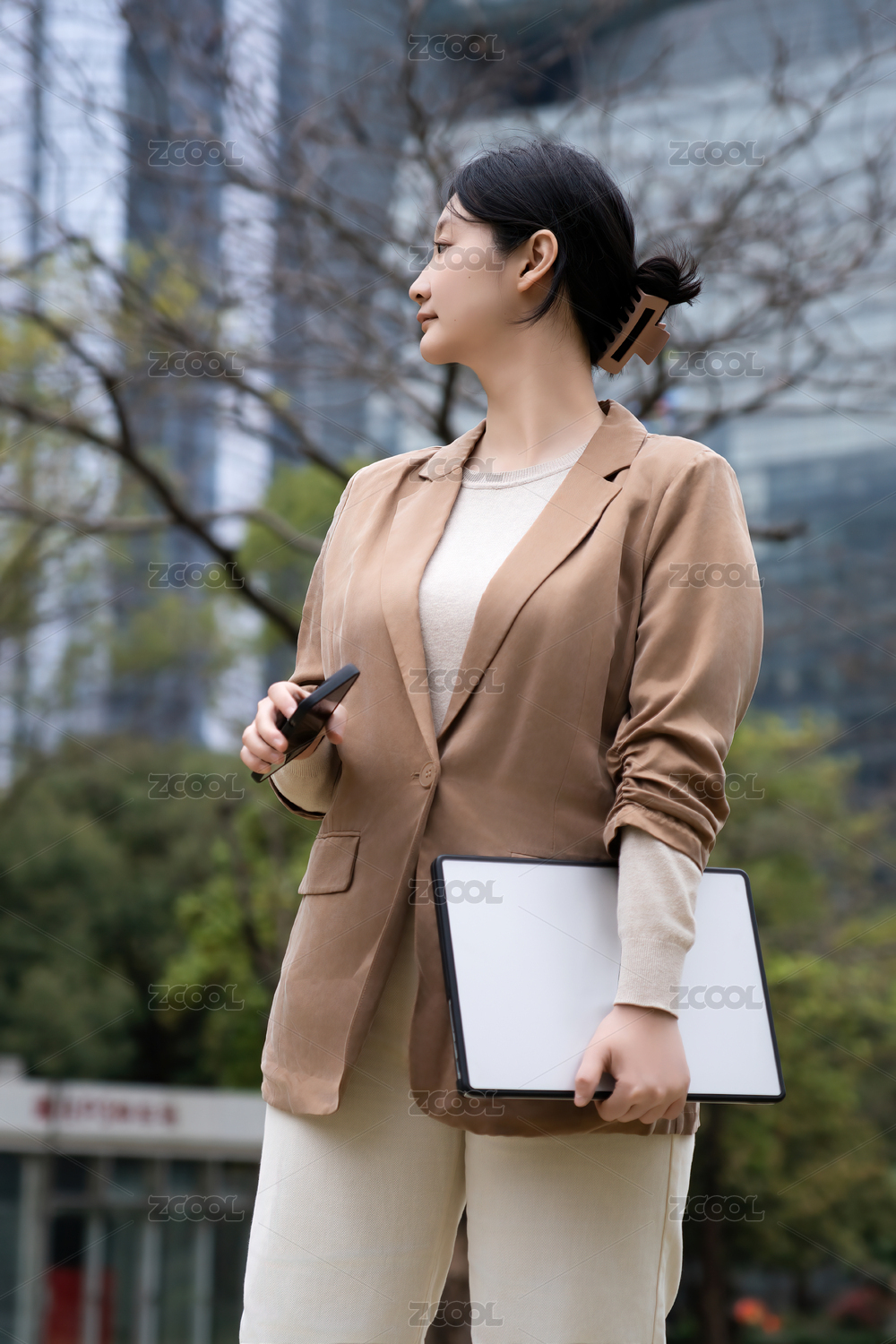 戶外平板雕刻的職業(yè)女性