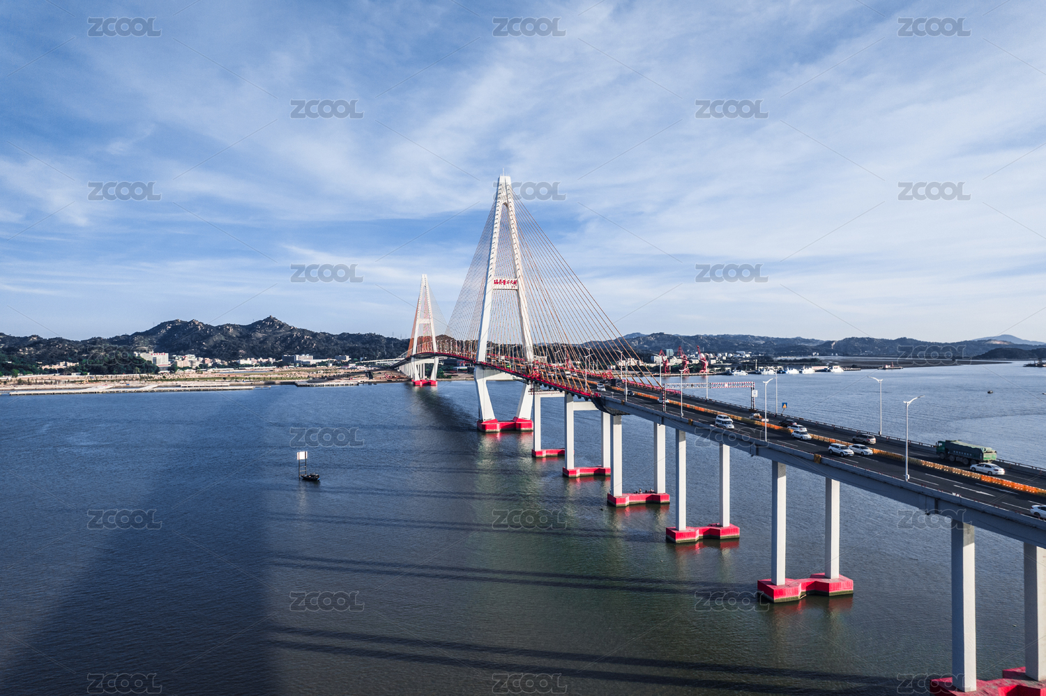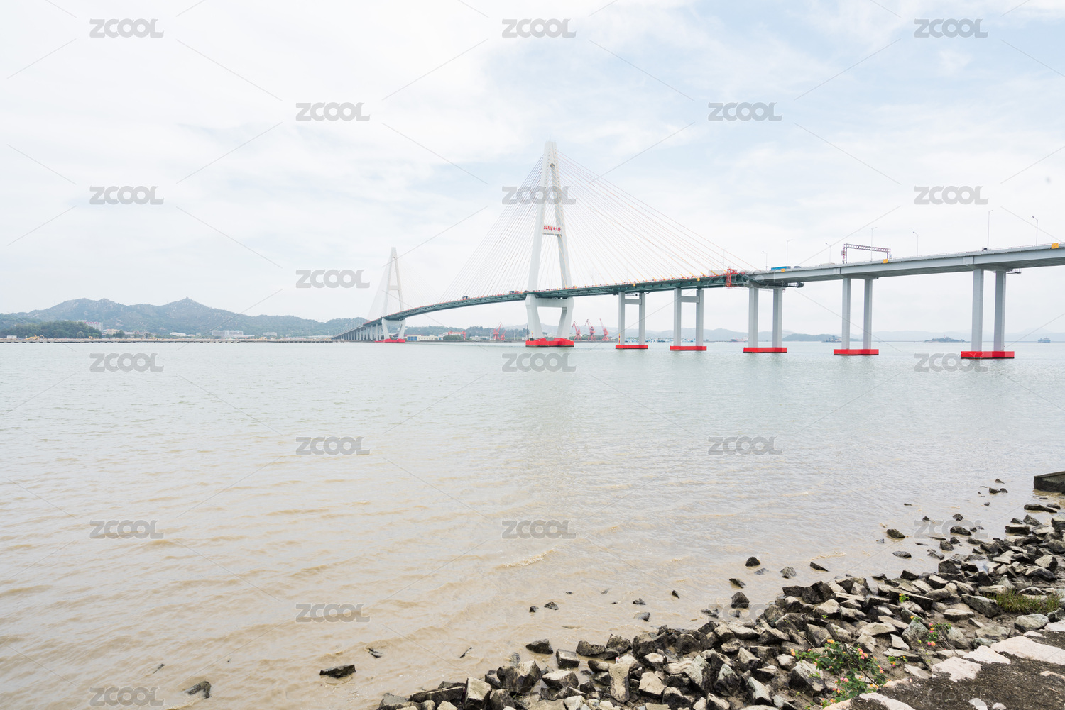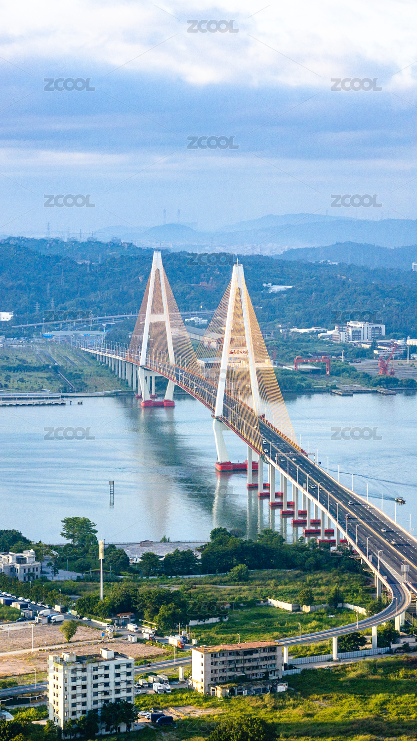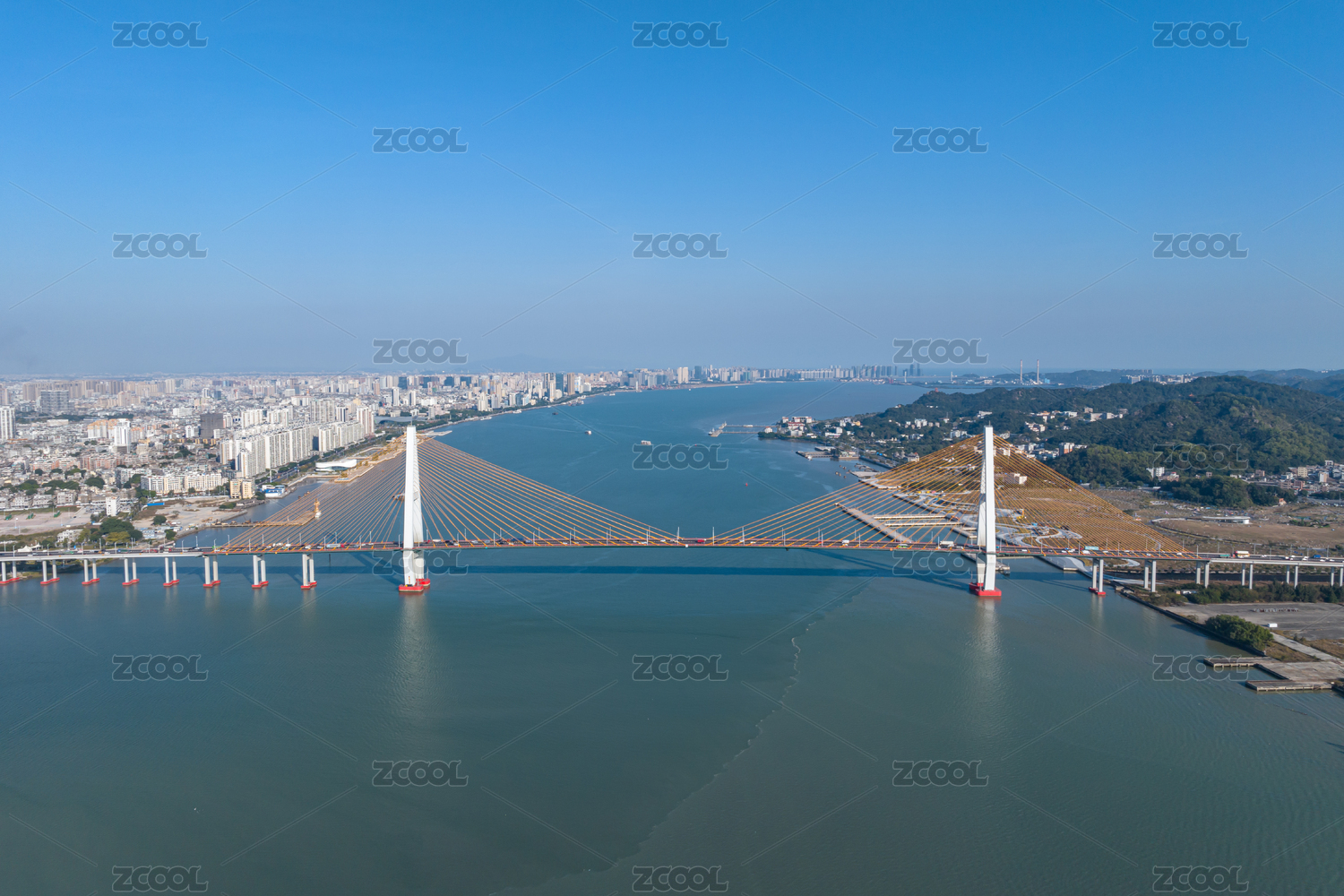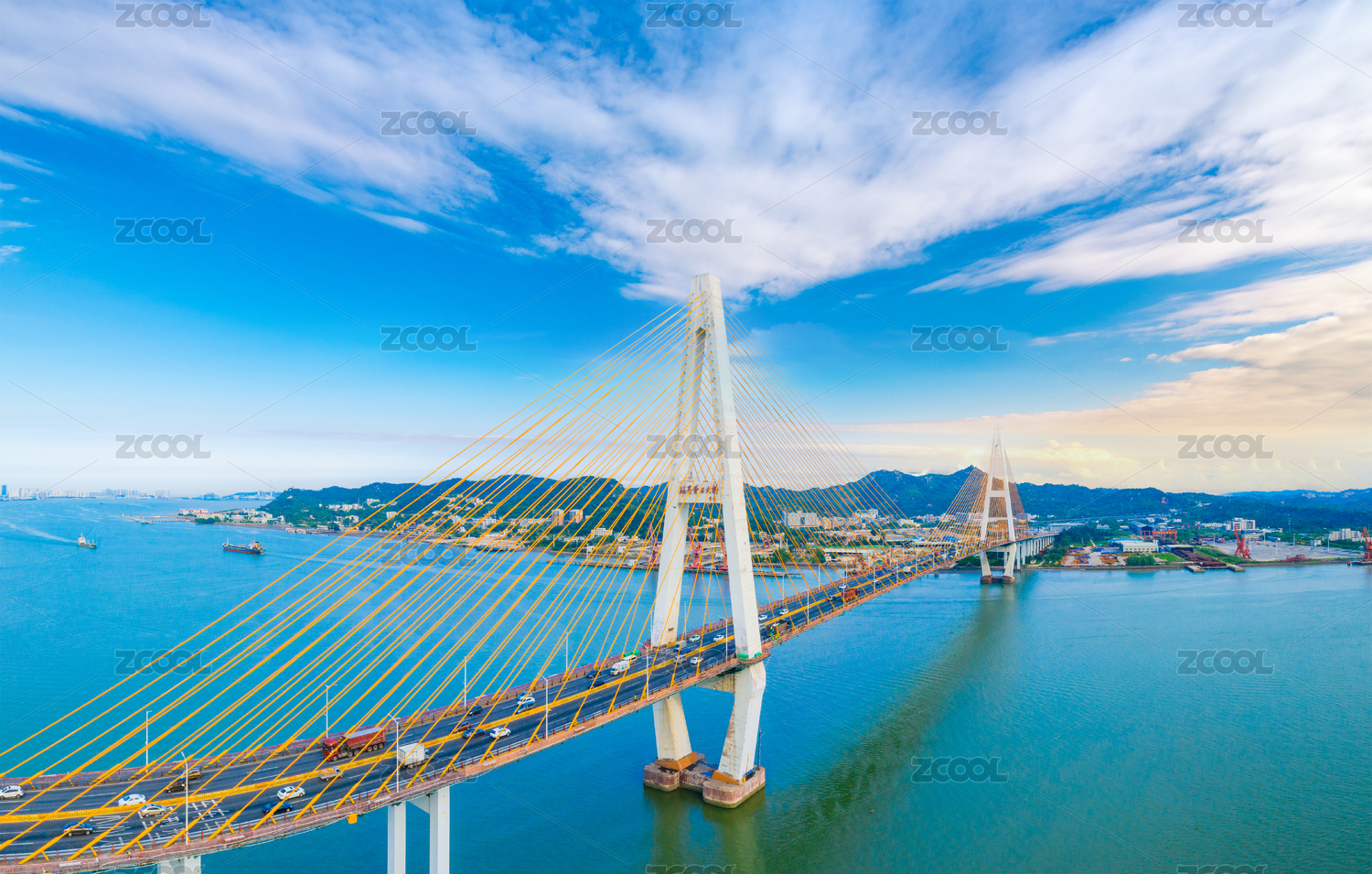 黃昏下的汕頭礐石大橋與內(nèi)海灣上的輪渡