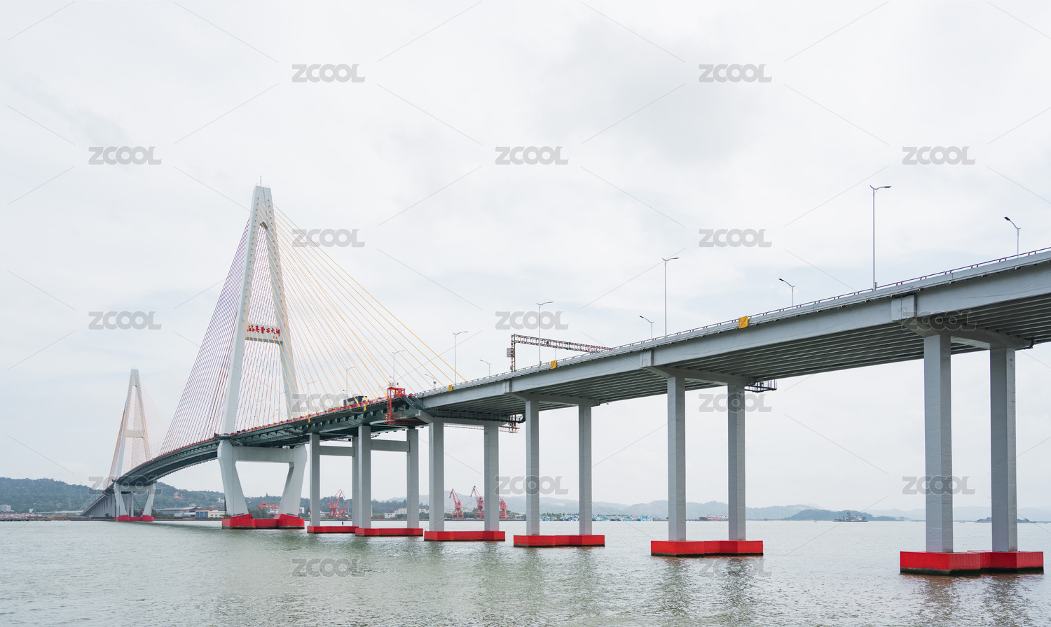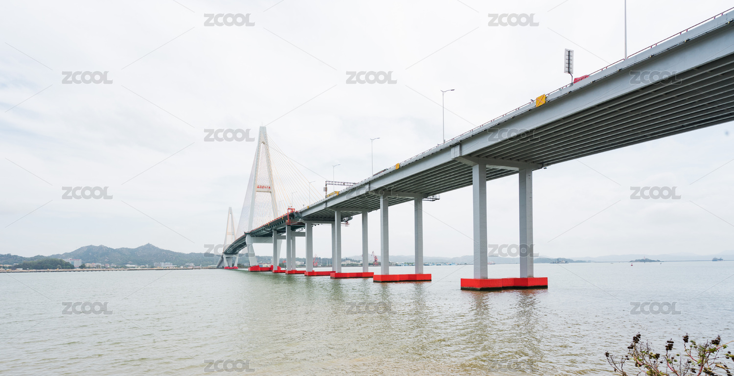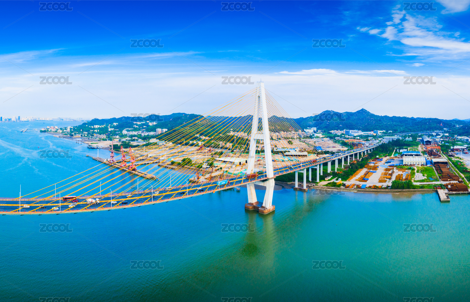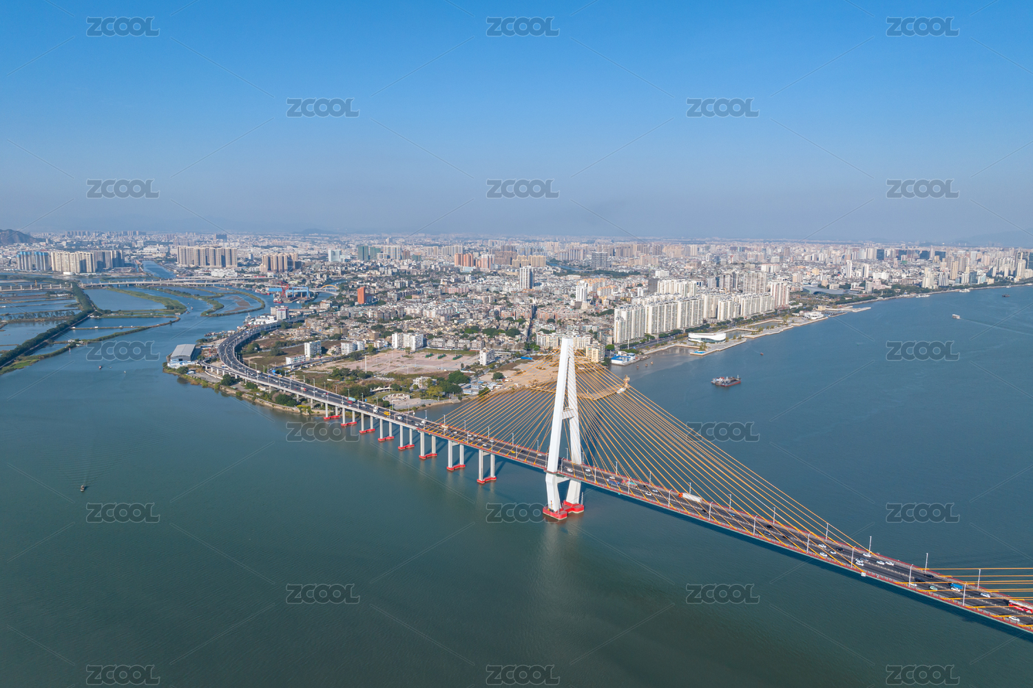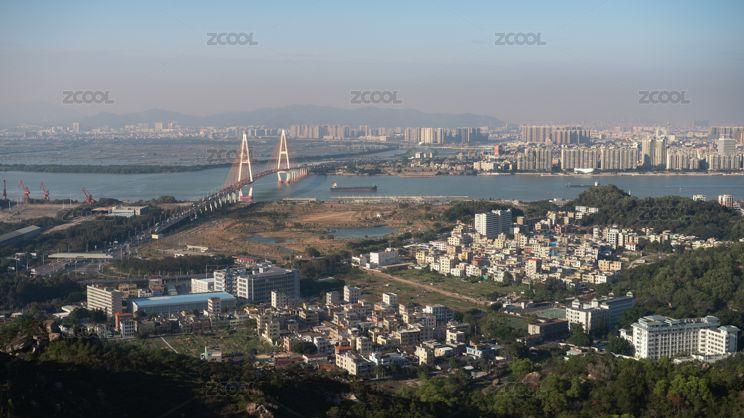 黃昏下的汕頭礐石大橋與內(nèi)海灣上的輪渡
