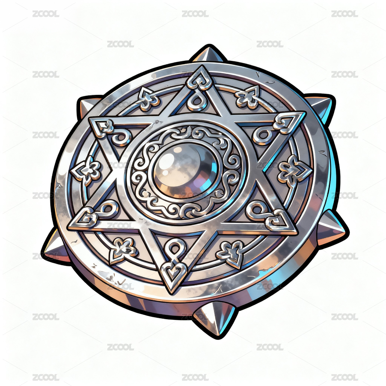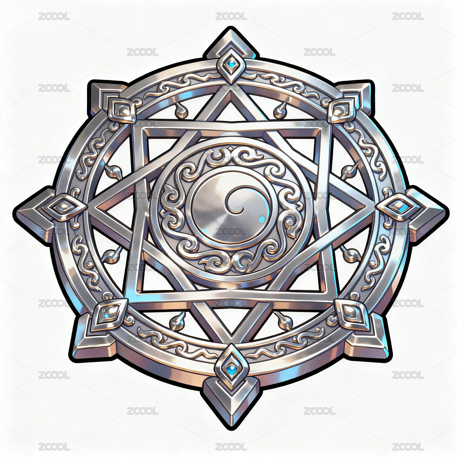 銀藍六芒星魔法陣神秘圖騰