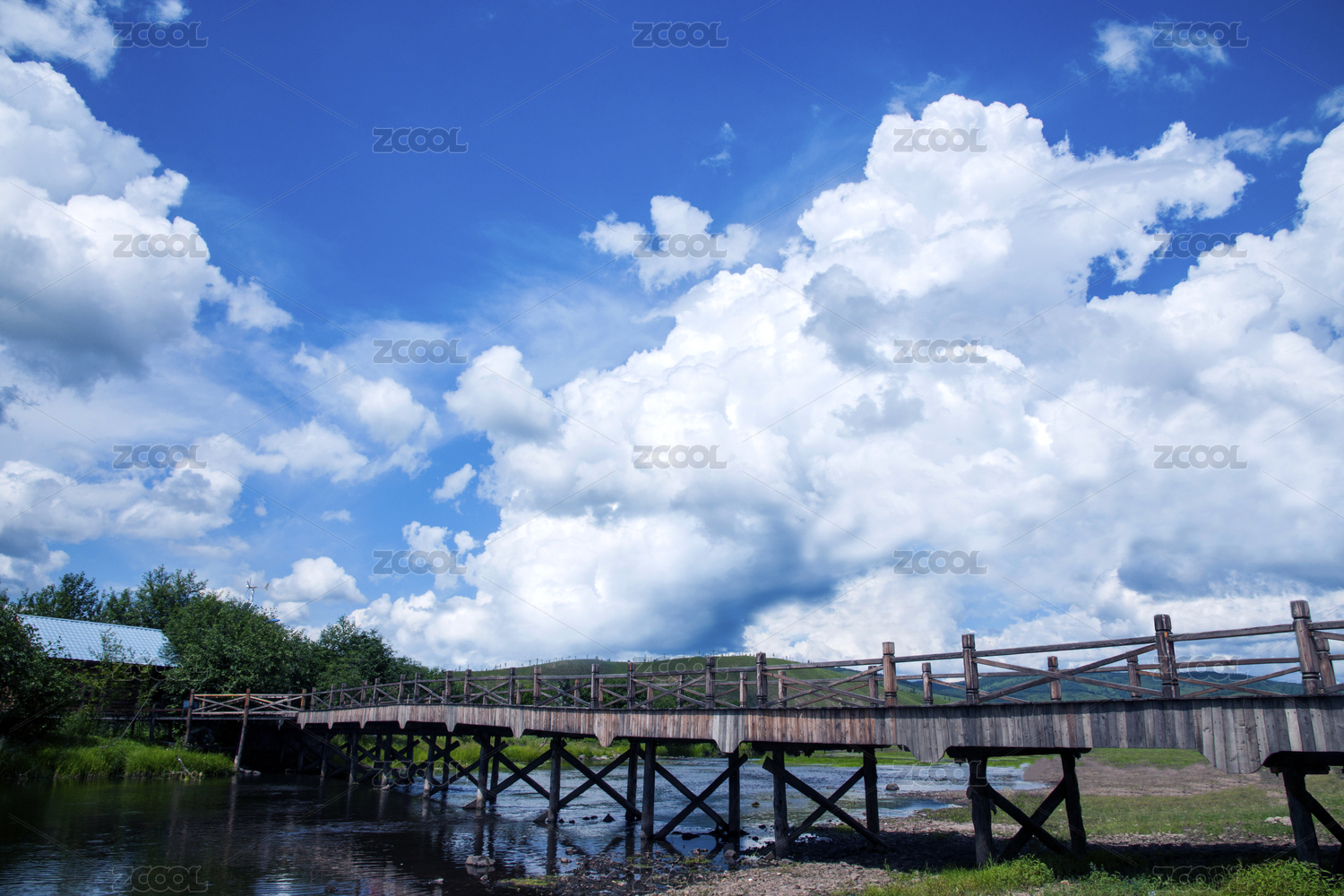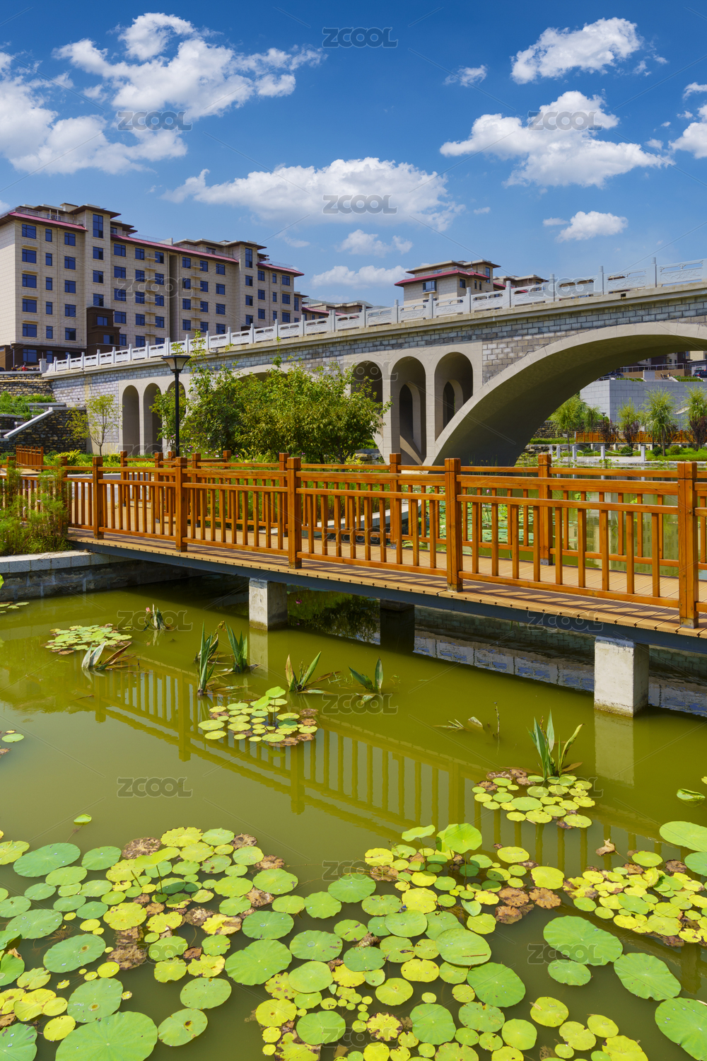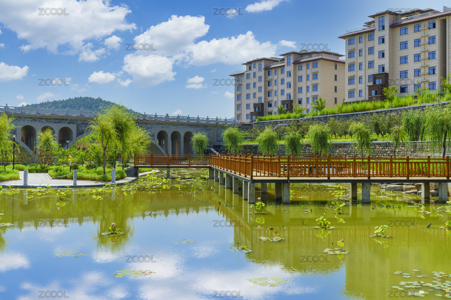 公園木橋樓房建筑