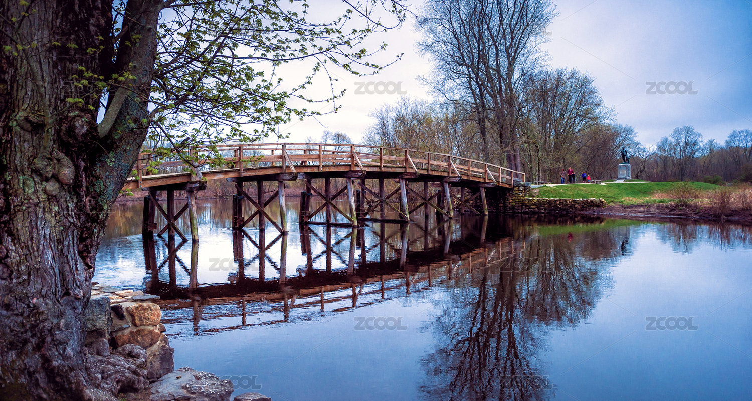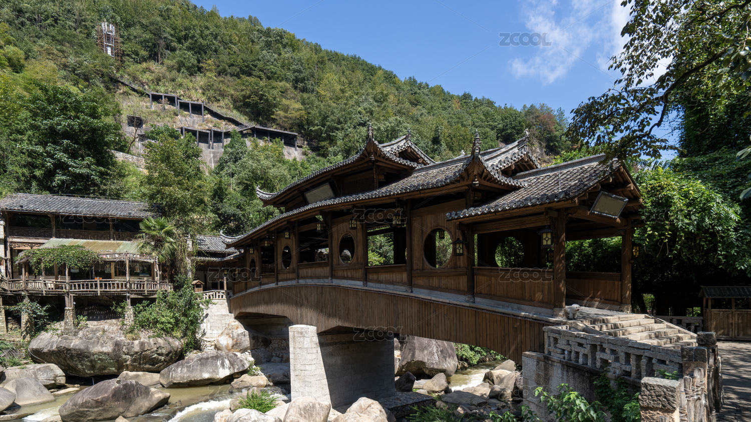 傳統(tǒng)中式木橋與自然景色