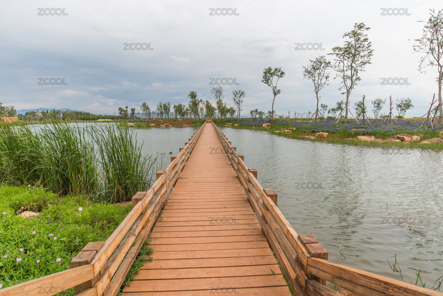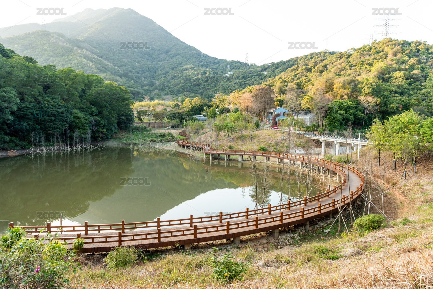 湖邊S型C型木橋走廊風(fēng)光