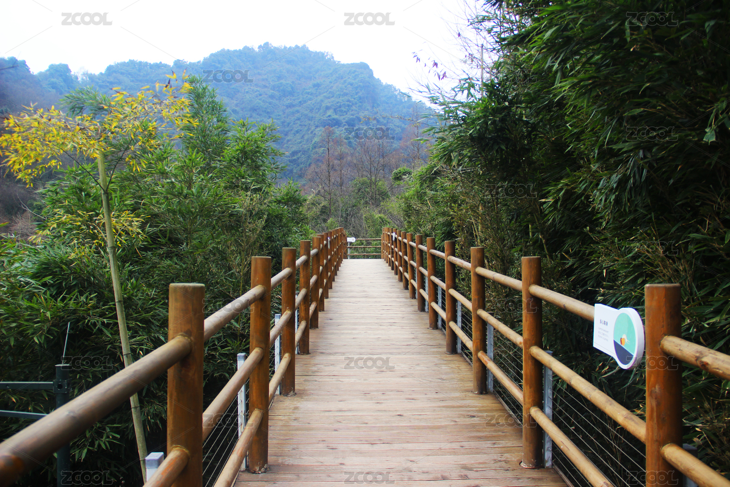 在綠植中間的木橋