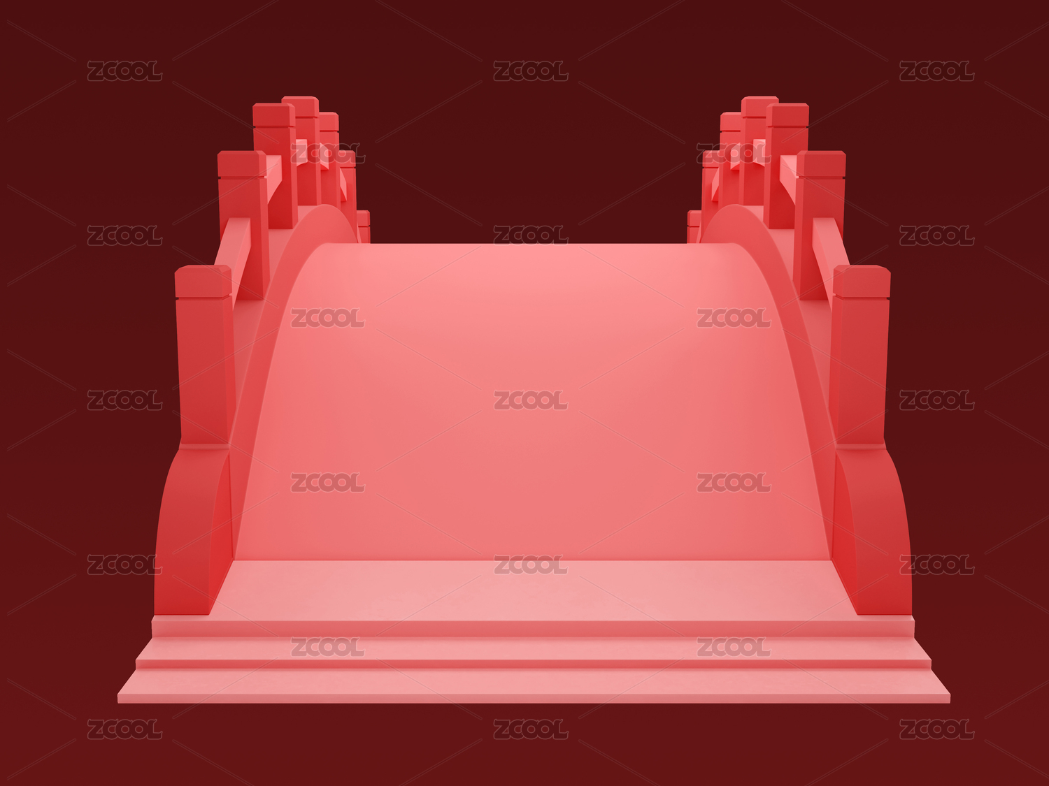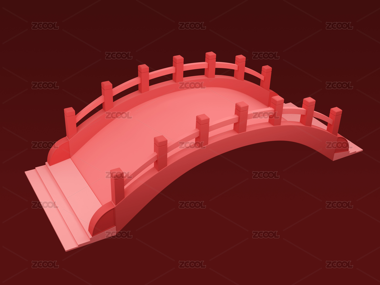 3D中式紅色愛情木橋素材