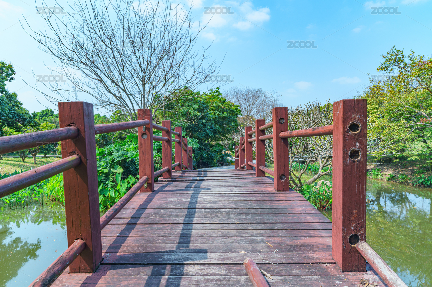 荷塘木橋