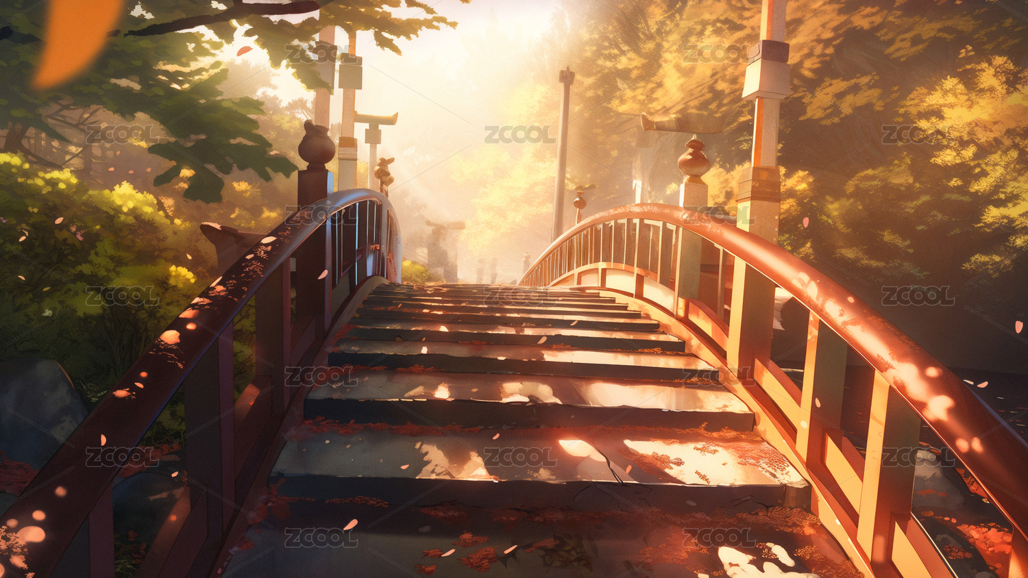 彩林光影映木橋