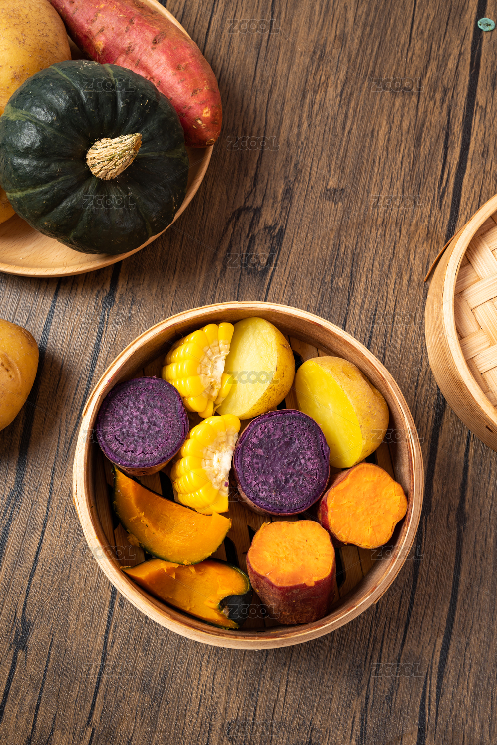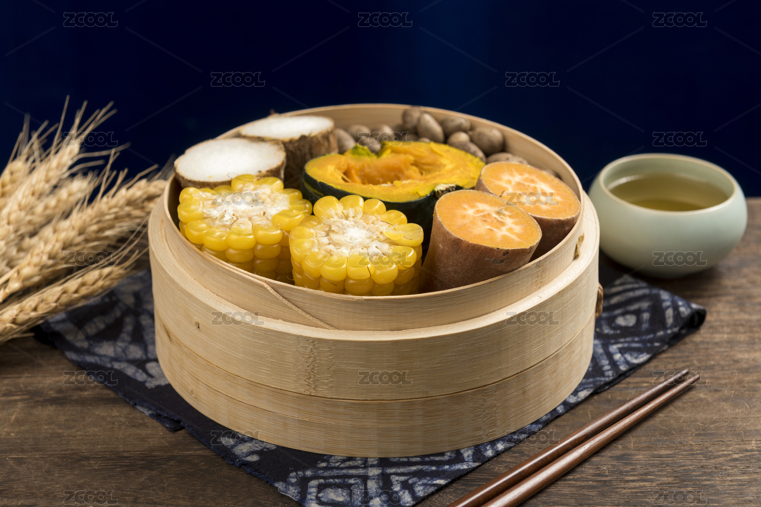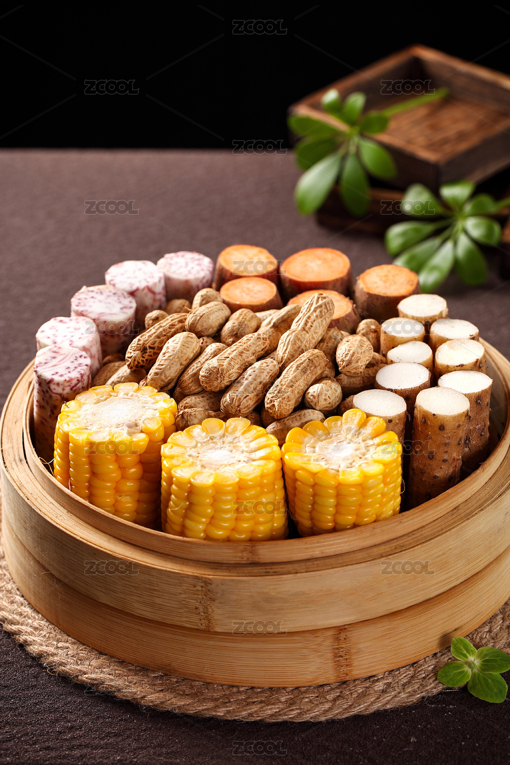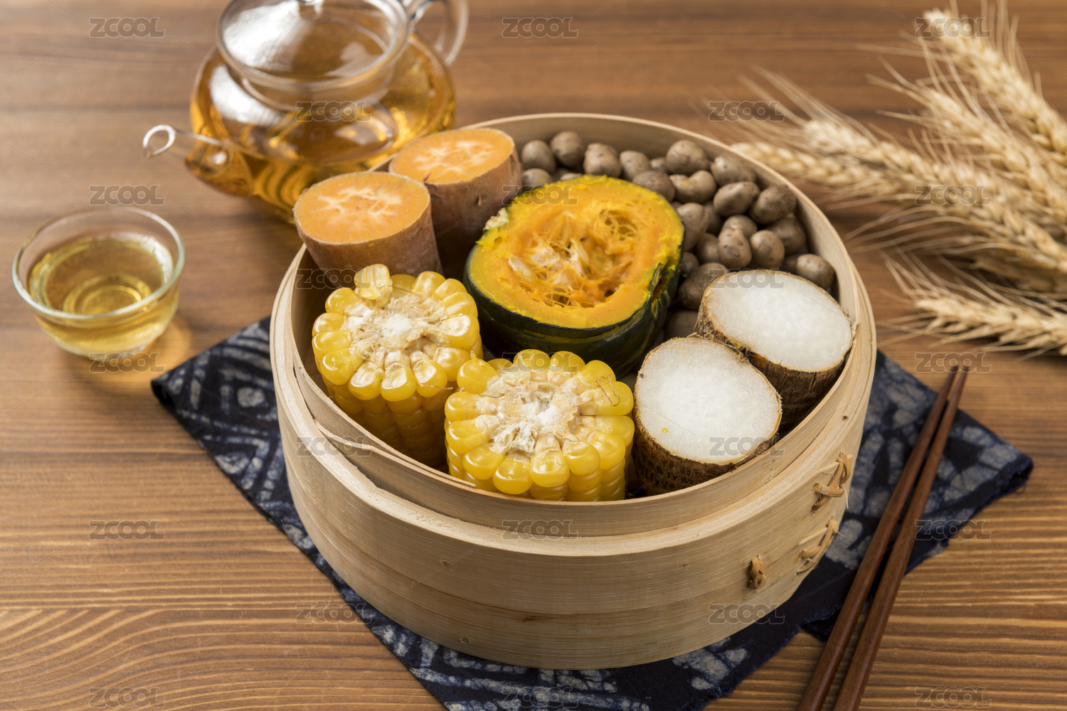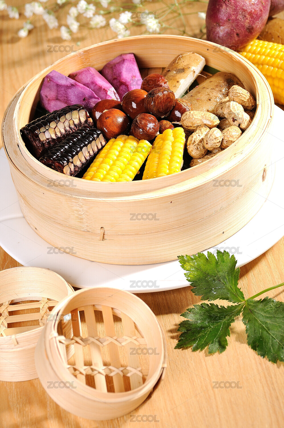 一蒸籠五谷豐登蒸制粗糧雜糧特寫