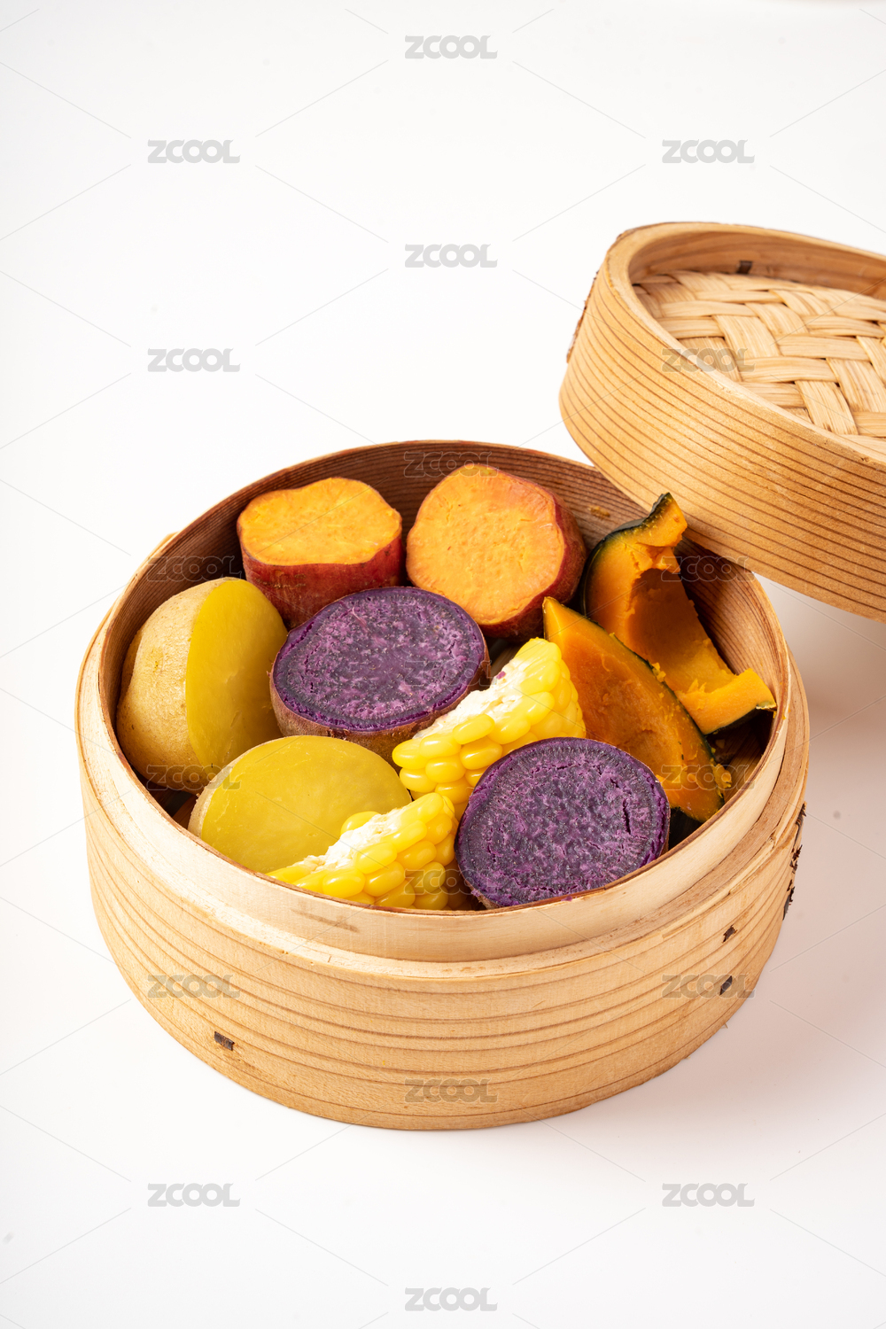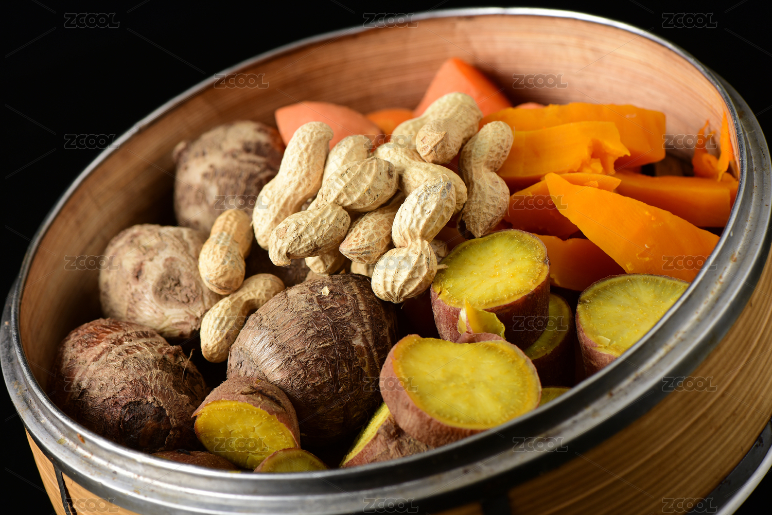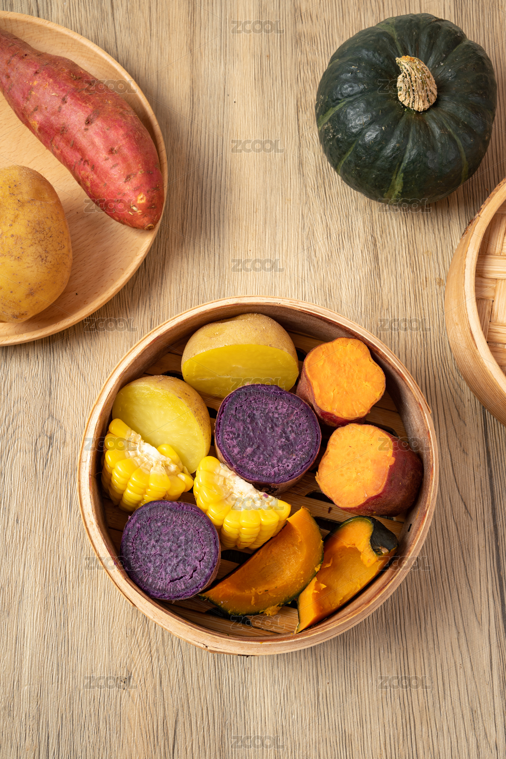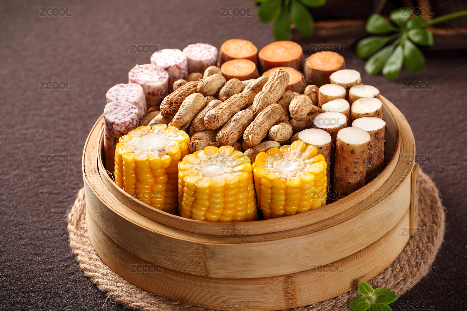 一蒸籠五谷豐登蒸制粗糧雜糧特寫