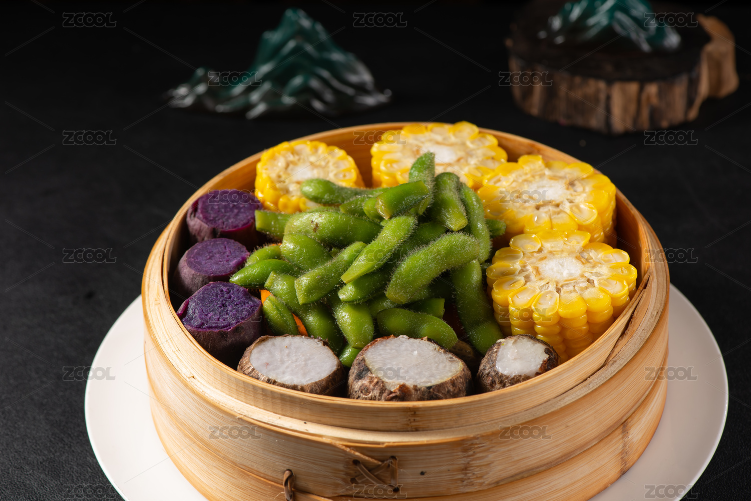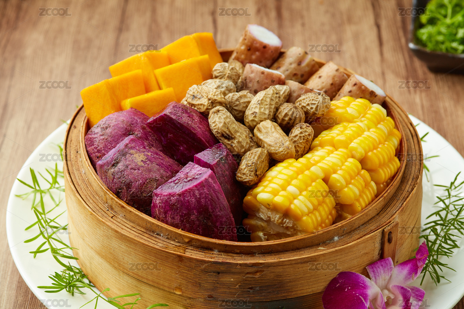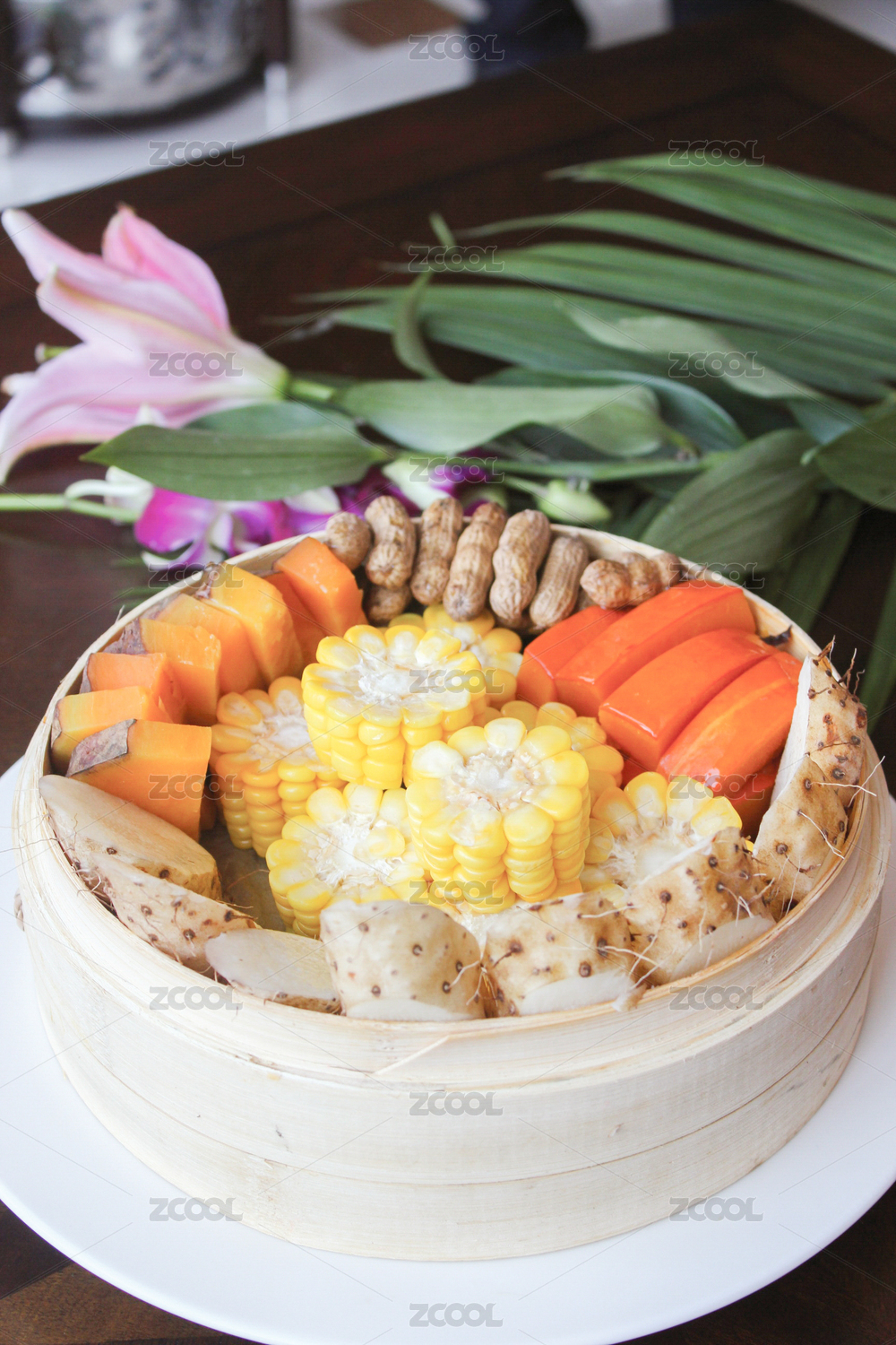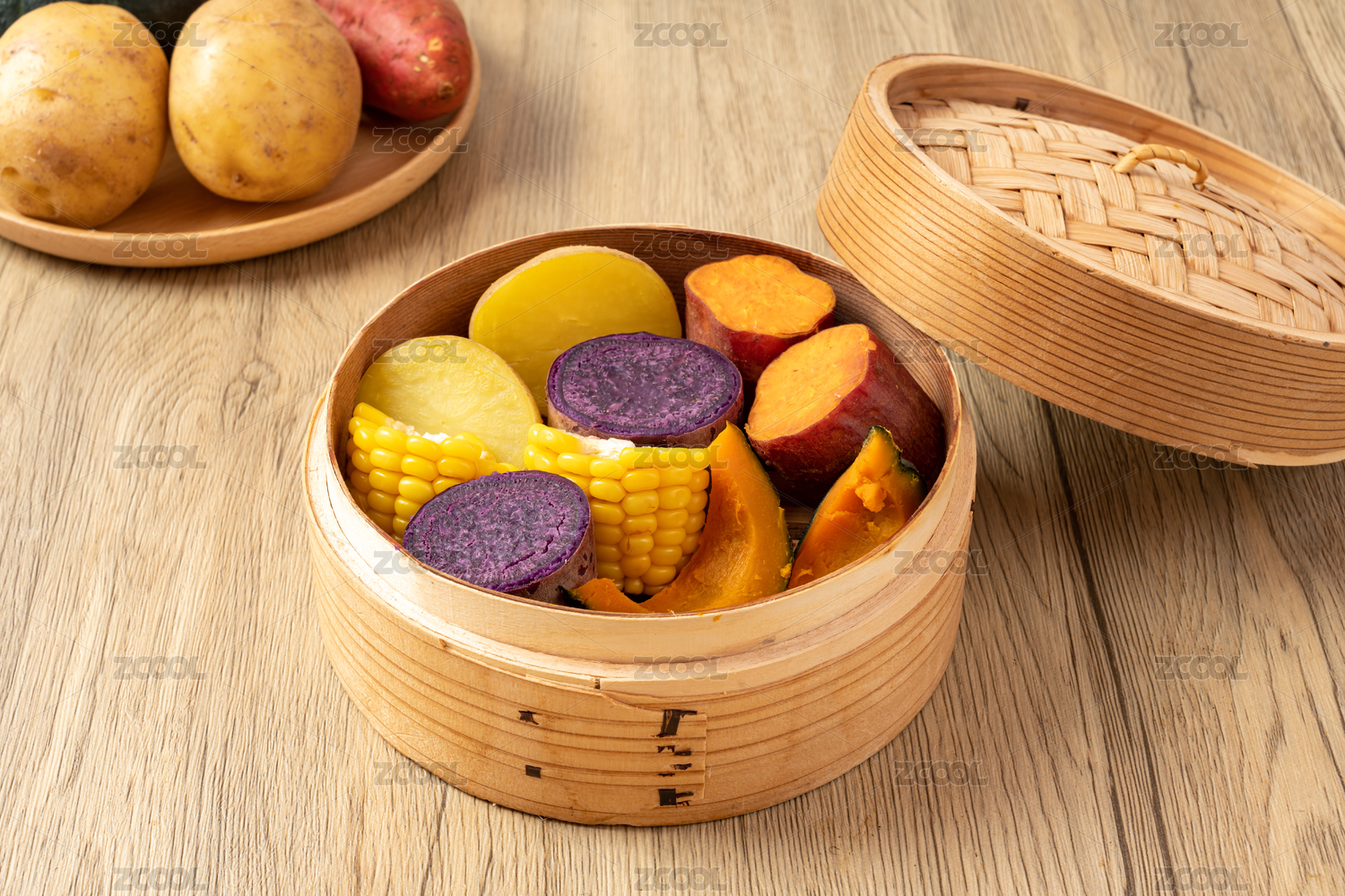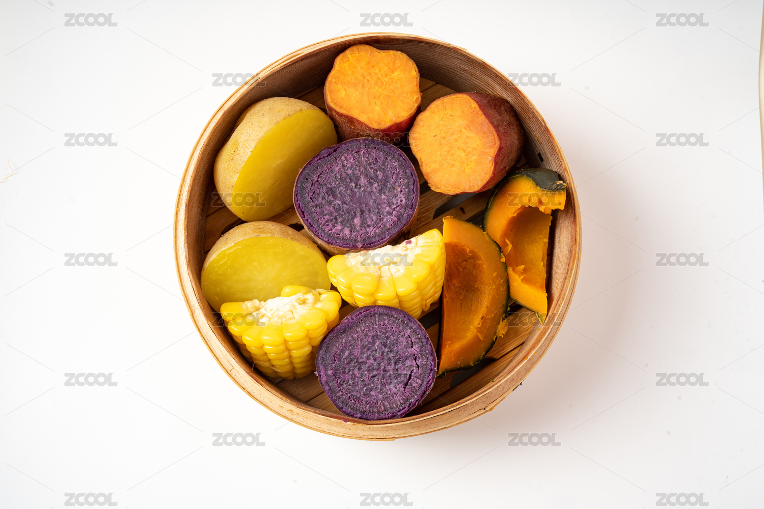 一蒸籠五谷豐登蒸制粗糧雜糧特寫