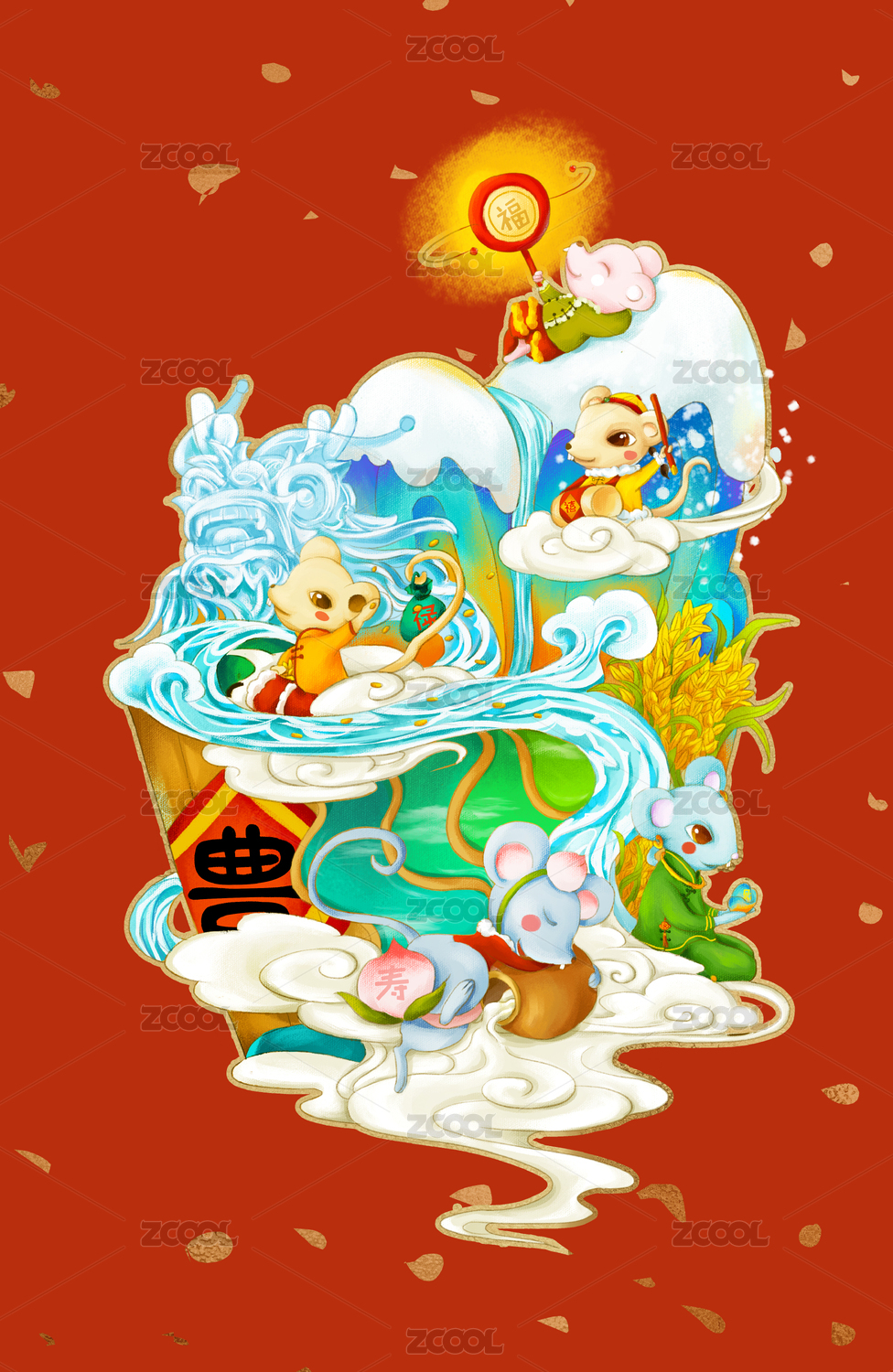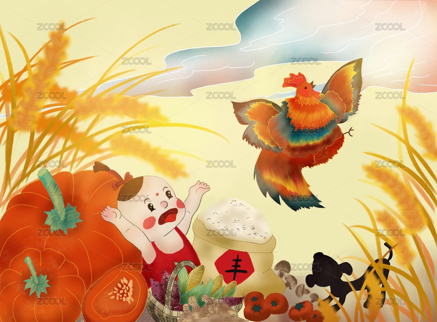 國(guó)潮五谷豐登春節(jié)插畫