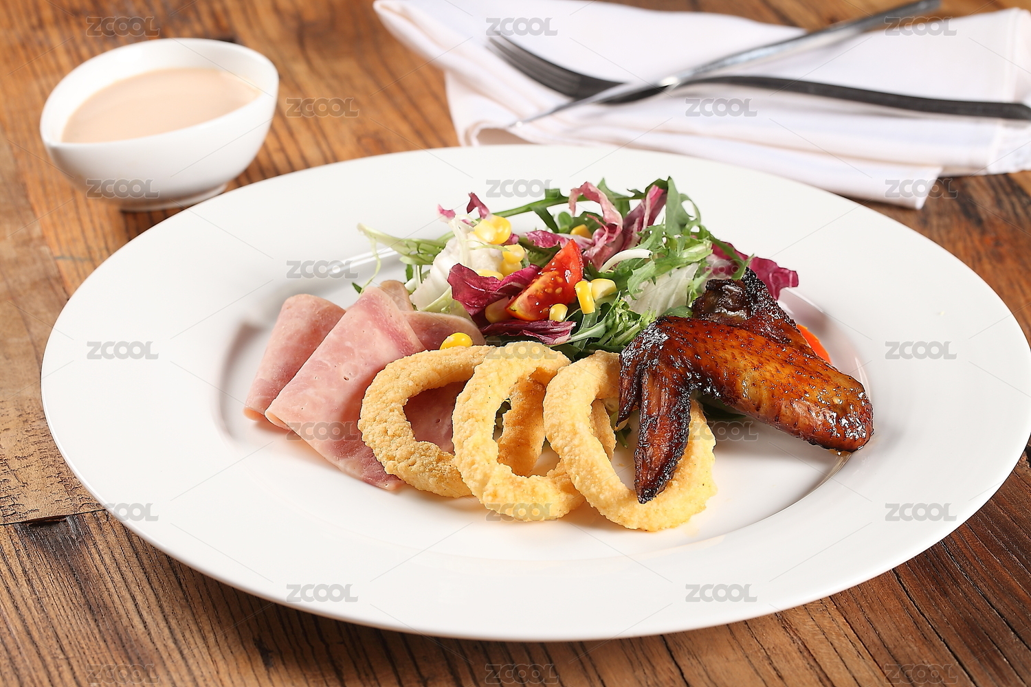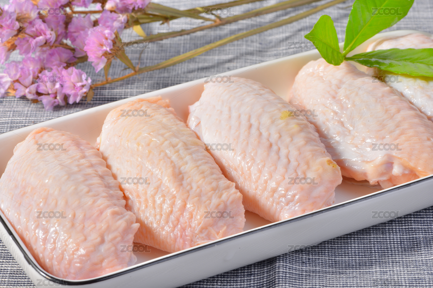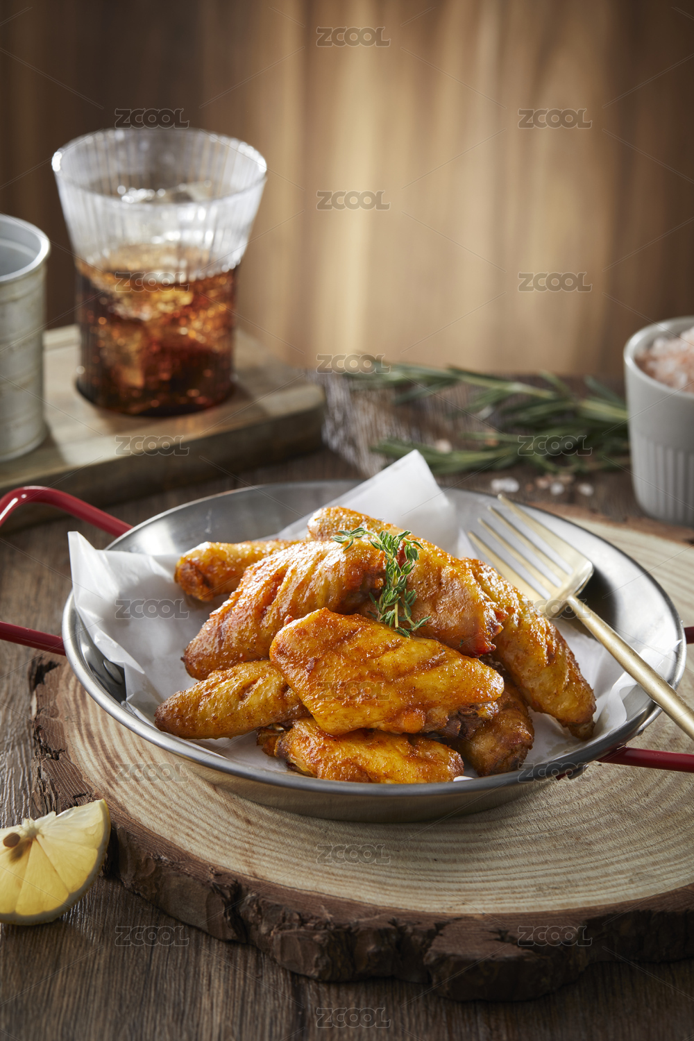 草墊上方盤(pán)里的奧爾良烤雞翅