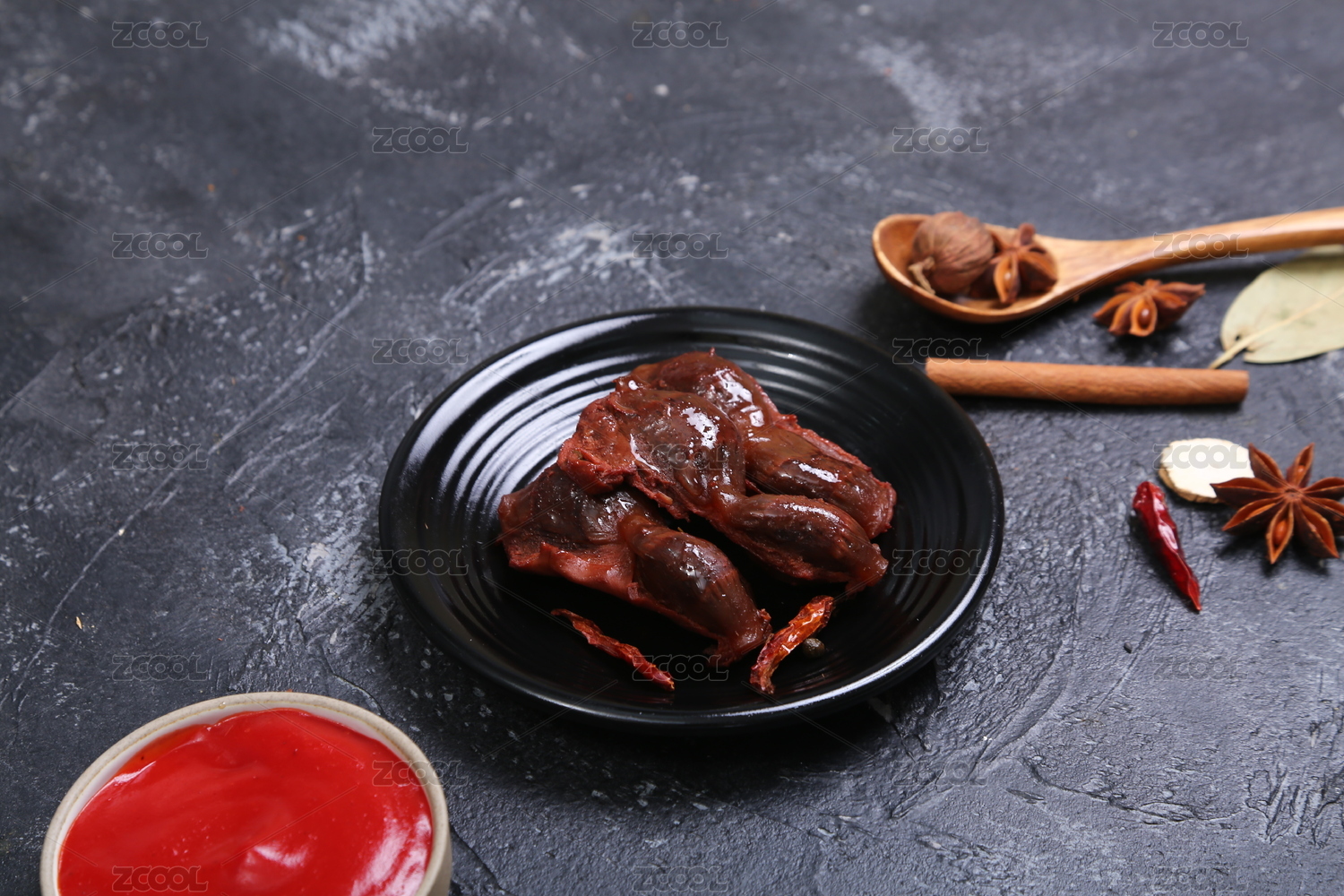 石盤上的鹵味麻辣雞胗鴨胗