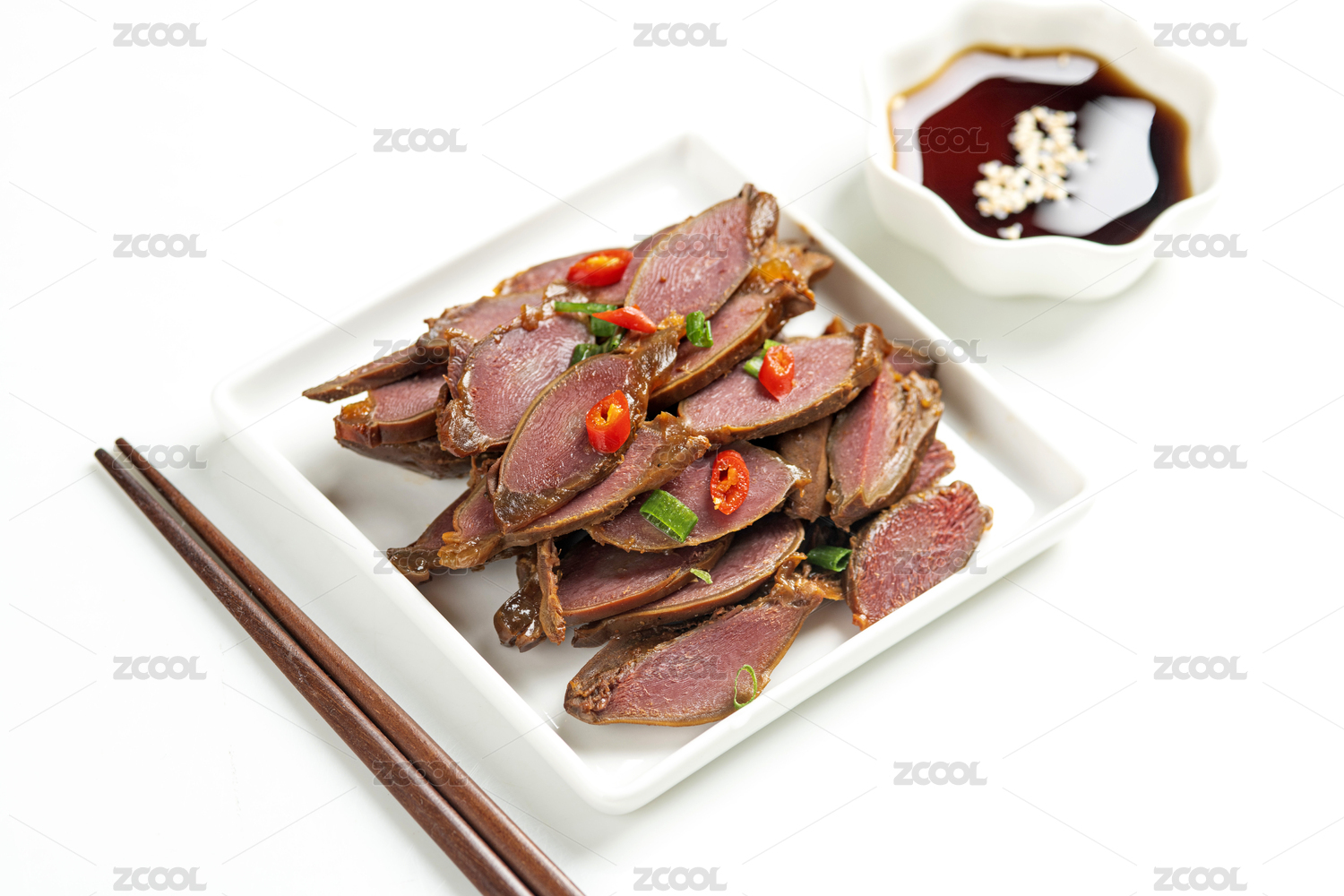 白色方瓷盤盛放的飄香鴨胗