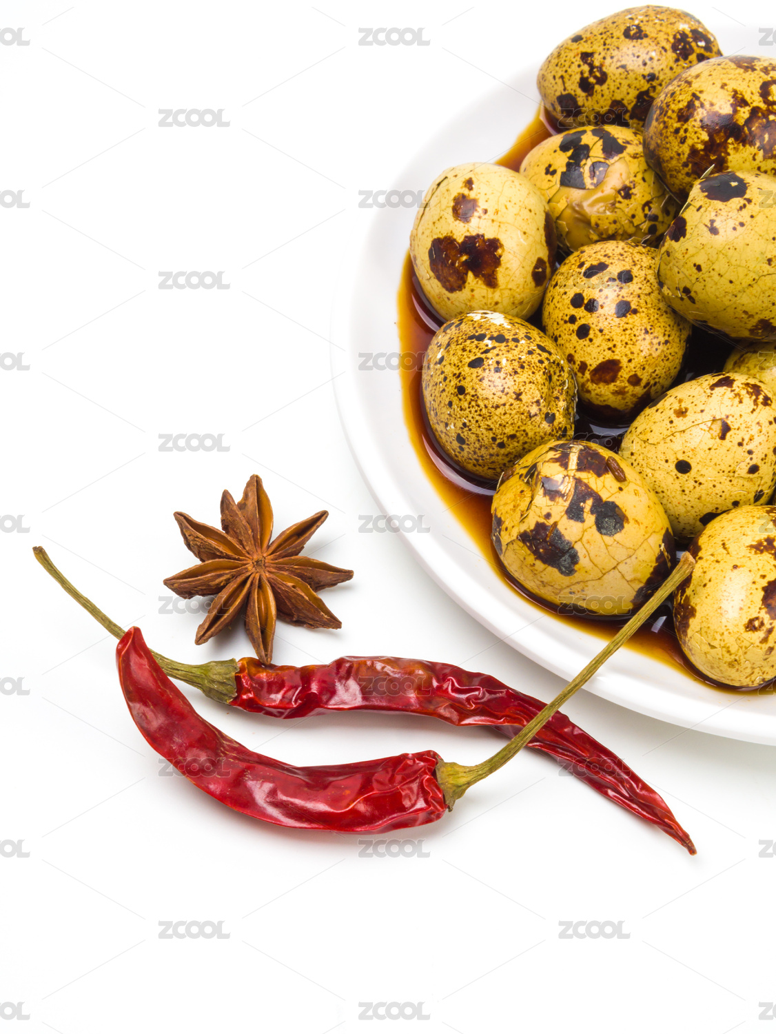 單色背景下的新鮮鹵鵪鶉