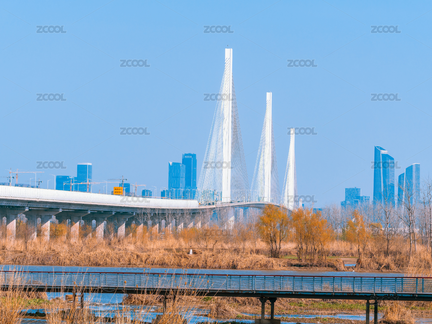 江心洲大橋河畔斜拉橋與青奧雙子塔