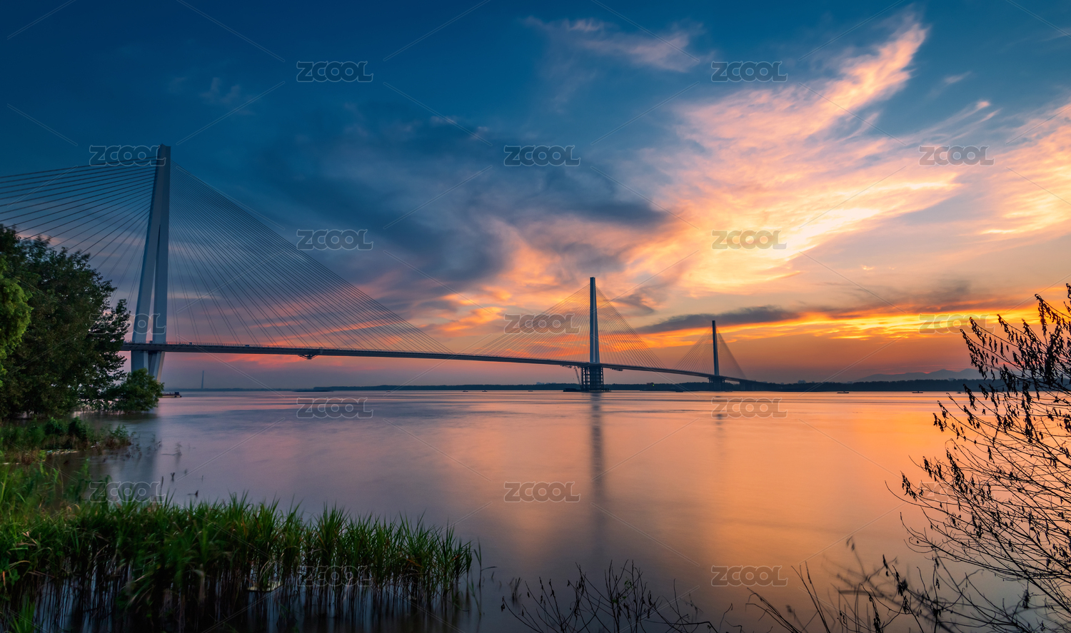 夕陽下的南京江心洲長(zhǎng)江大橋(長(zhǎng)江五橋)