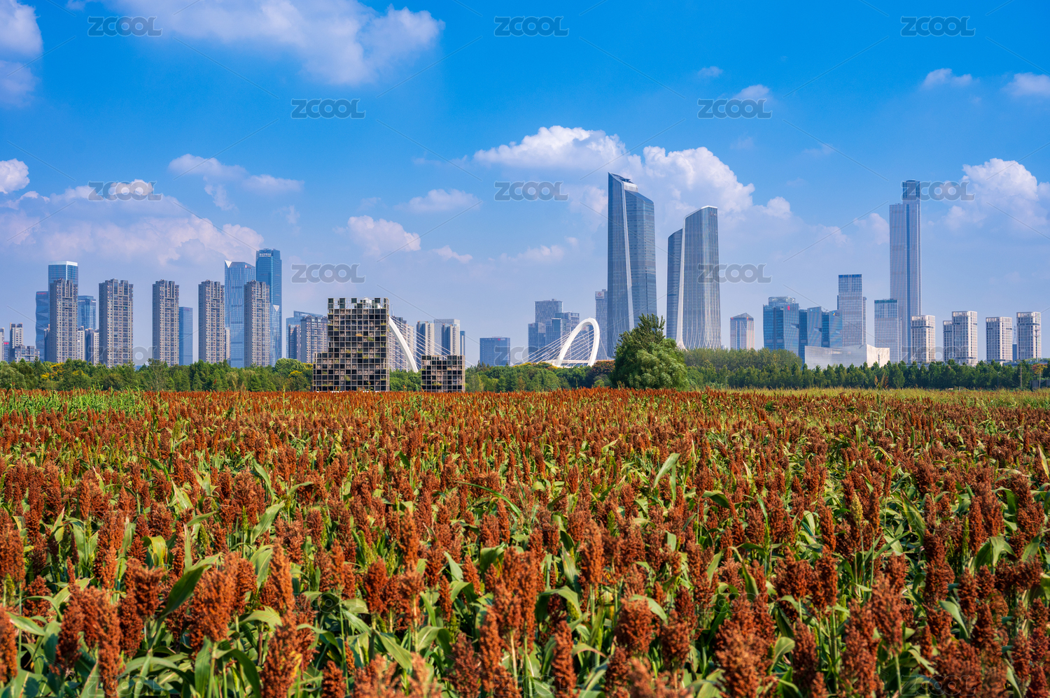 中國(guó)江蘇南京江心洲遠(yuǎn)眺河西新區(qū)風(fēng)光