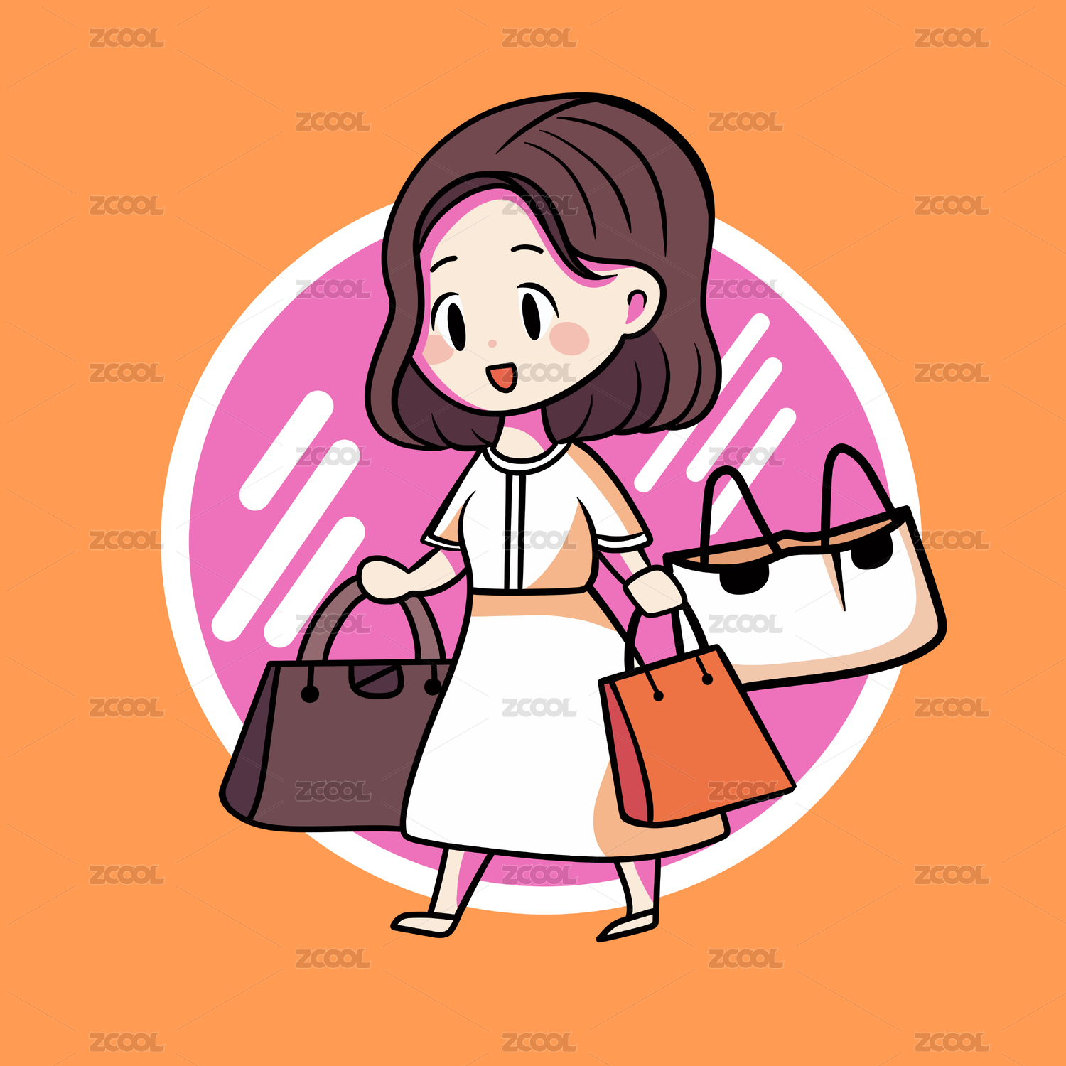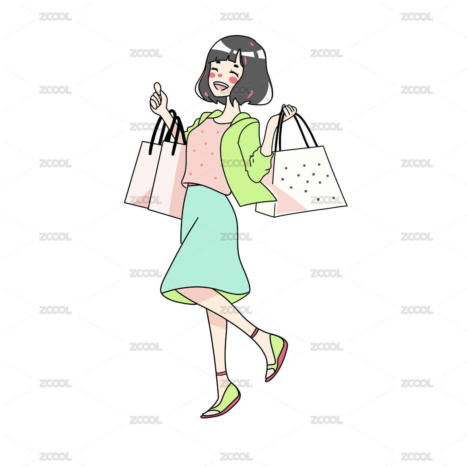 手提購物袋的女孩逛街購物卡通圖案