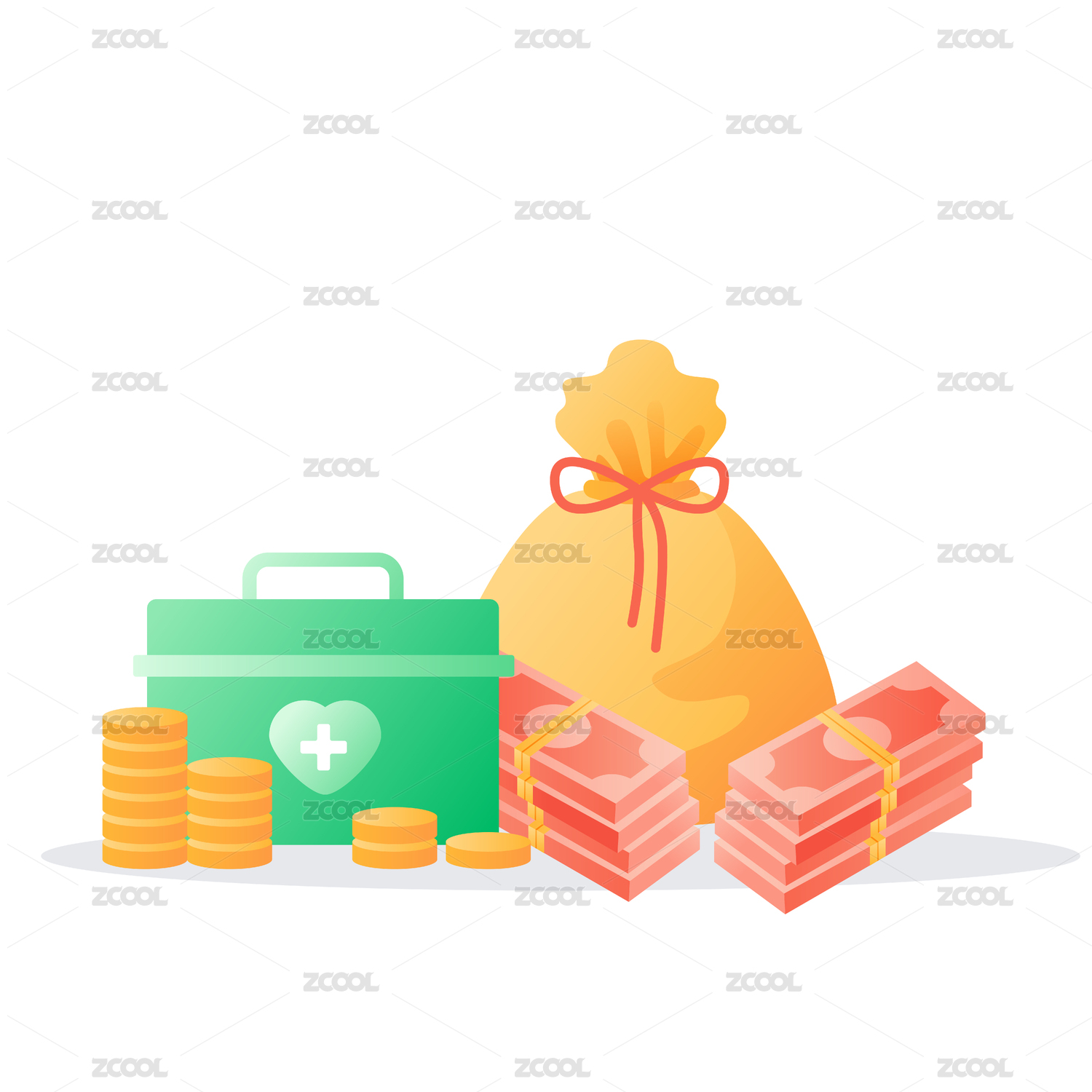 醫(yī)療急救包和錢袋子小插畫