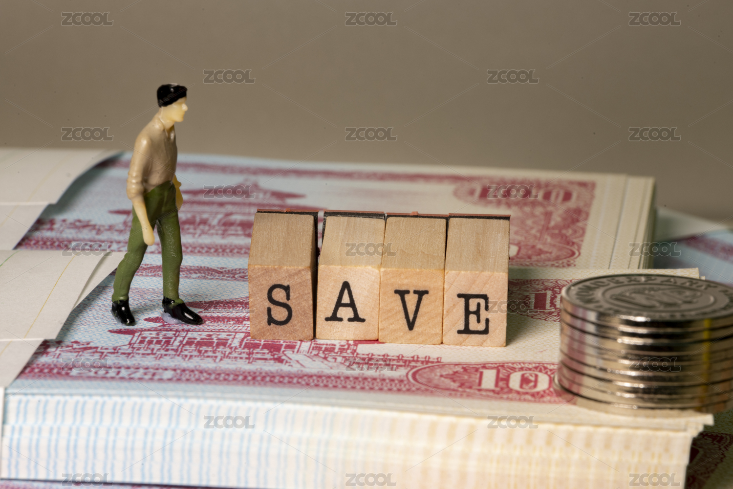 SAVE存錢意識 迷你小人站在紙幣上