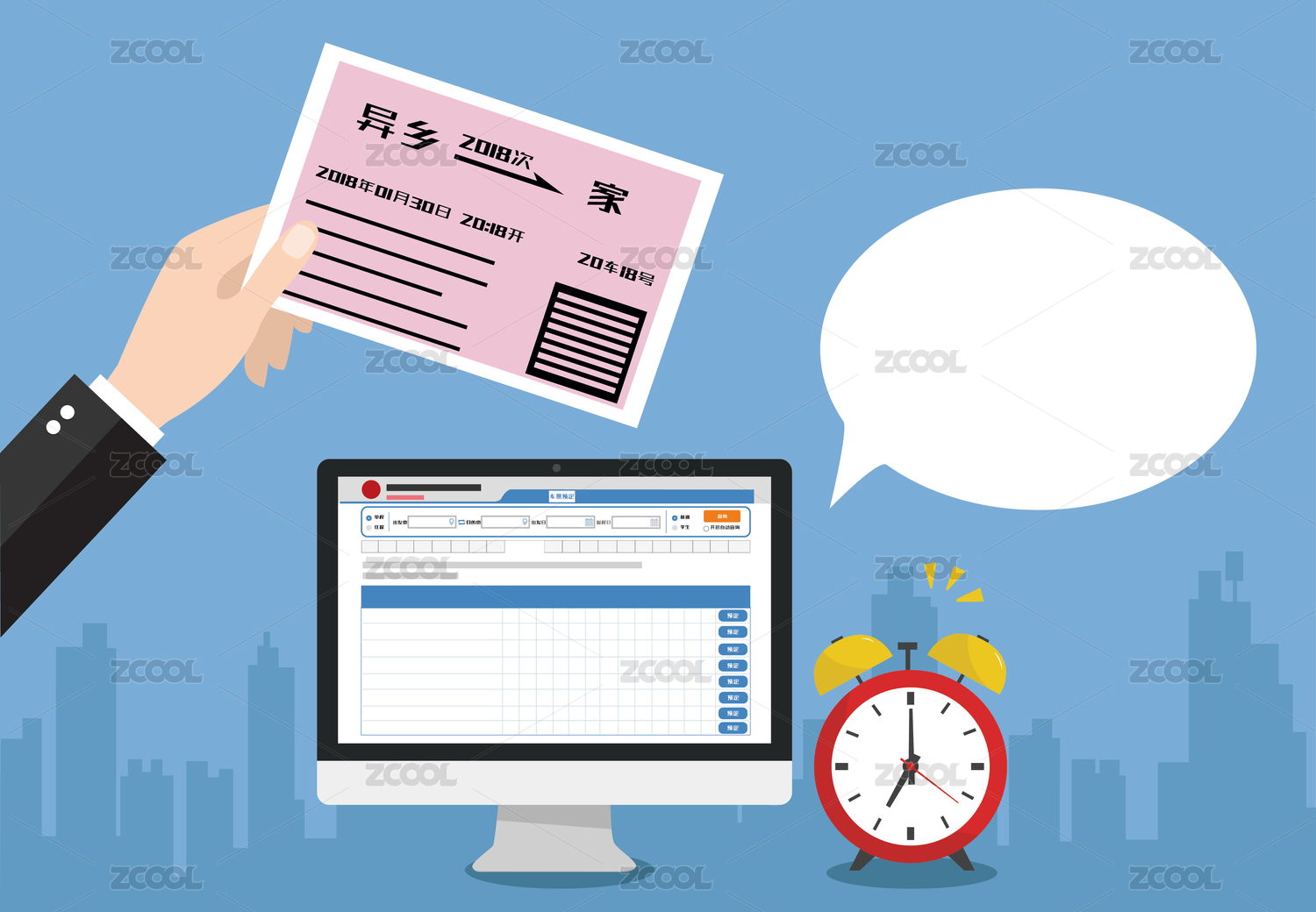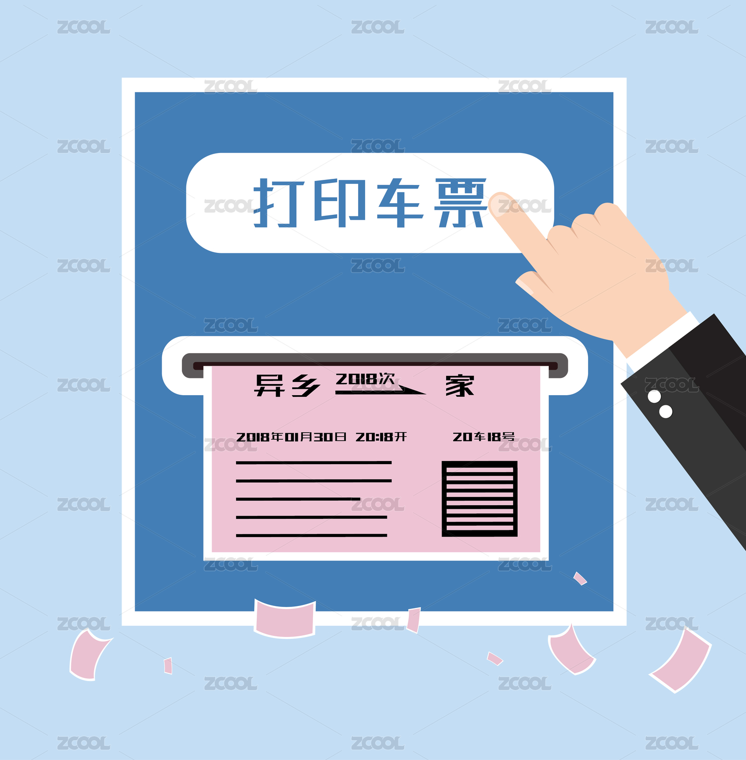 新年春運(yùn)高鐵火車(chē)票搶票活動(dòng)矢量元素插畫(huà)