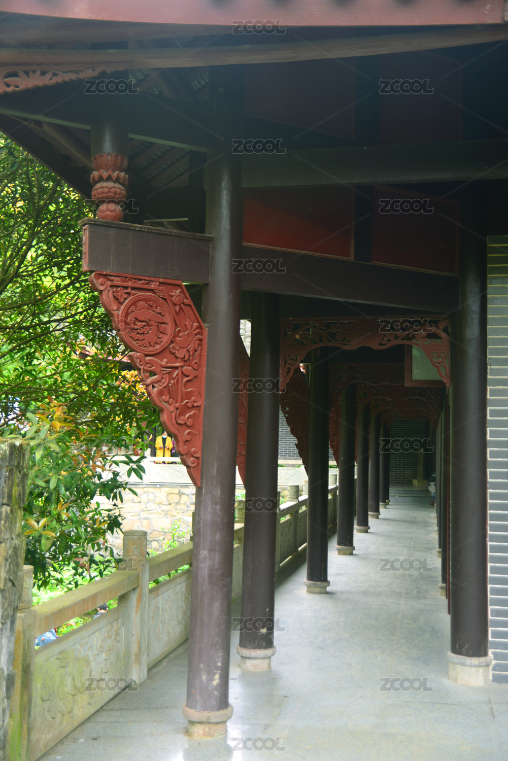 成都彭州丹景山 陸游祠走廊木柱和欄桿