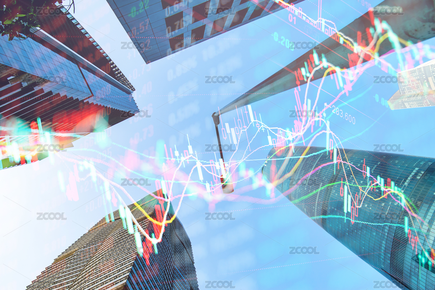 現(xiàn)場商務(wù)建筑與金融股市證券概念視圖