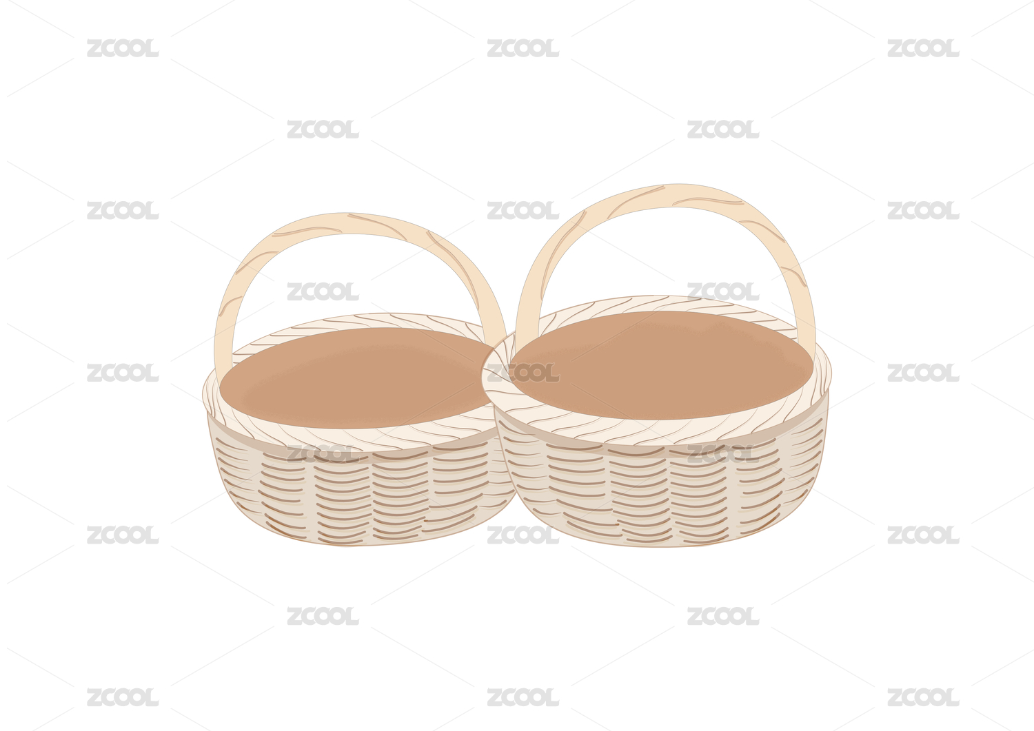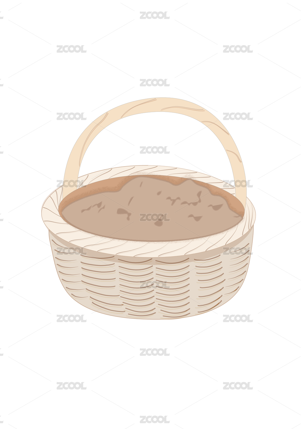 裝滿渣土的柳編筐子和白色背景矢量插畫(huà)