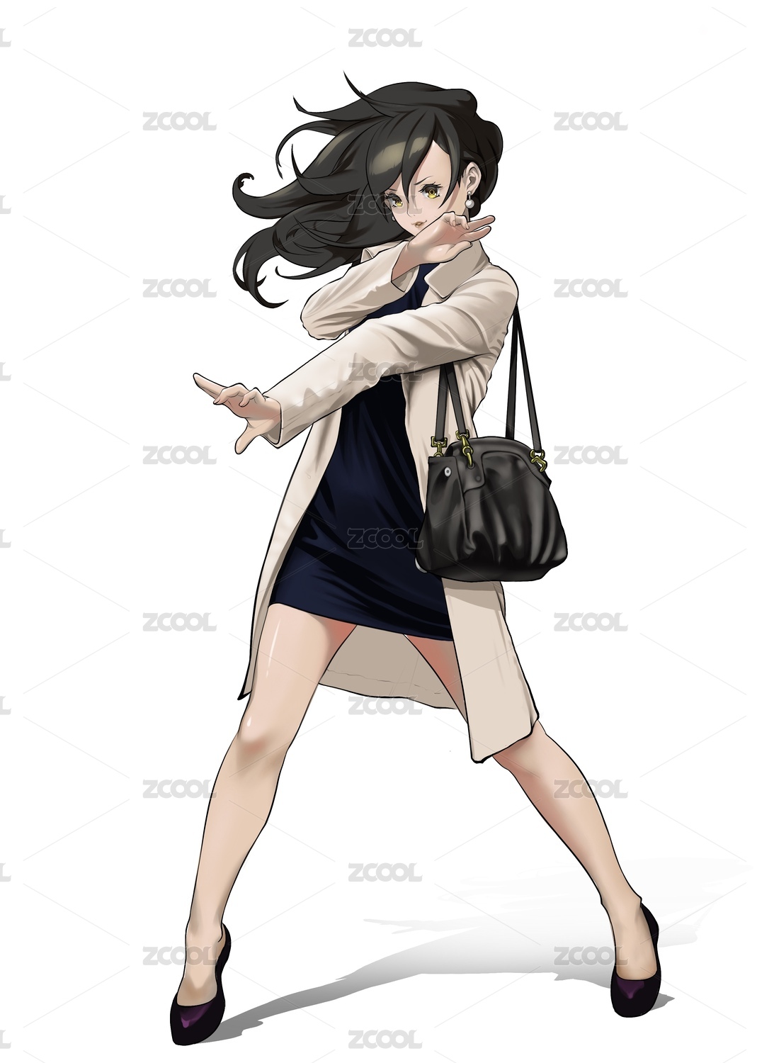 身著大衣背著皮包的時尚長發(fā)女生