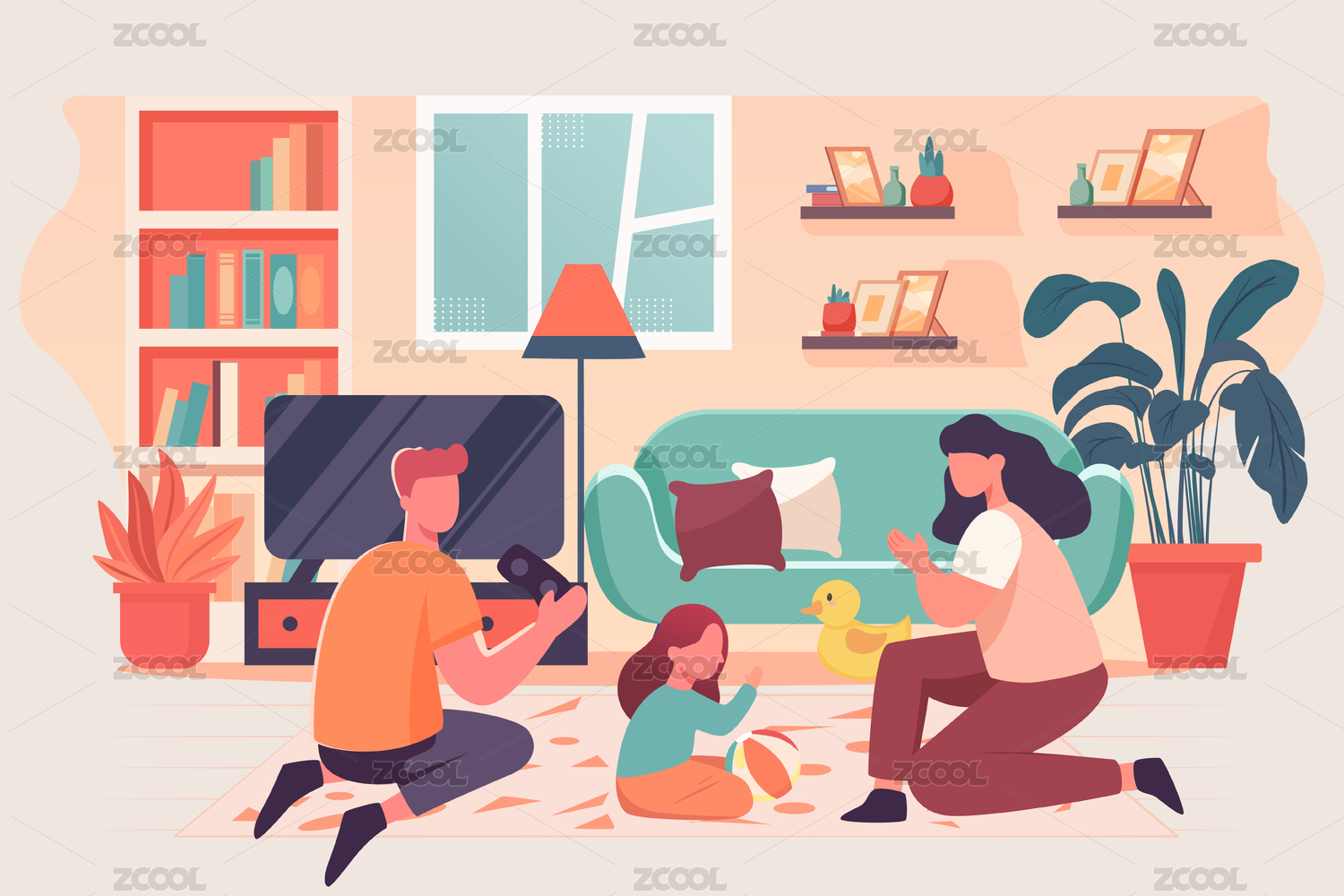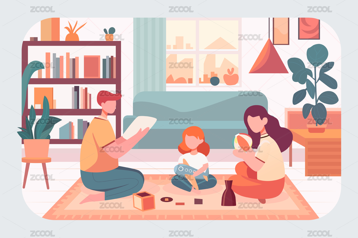兒童節(jié)一家人親子教育居家互動室內(nèi)游戲插畫