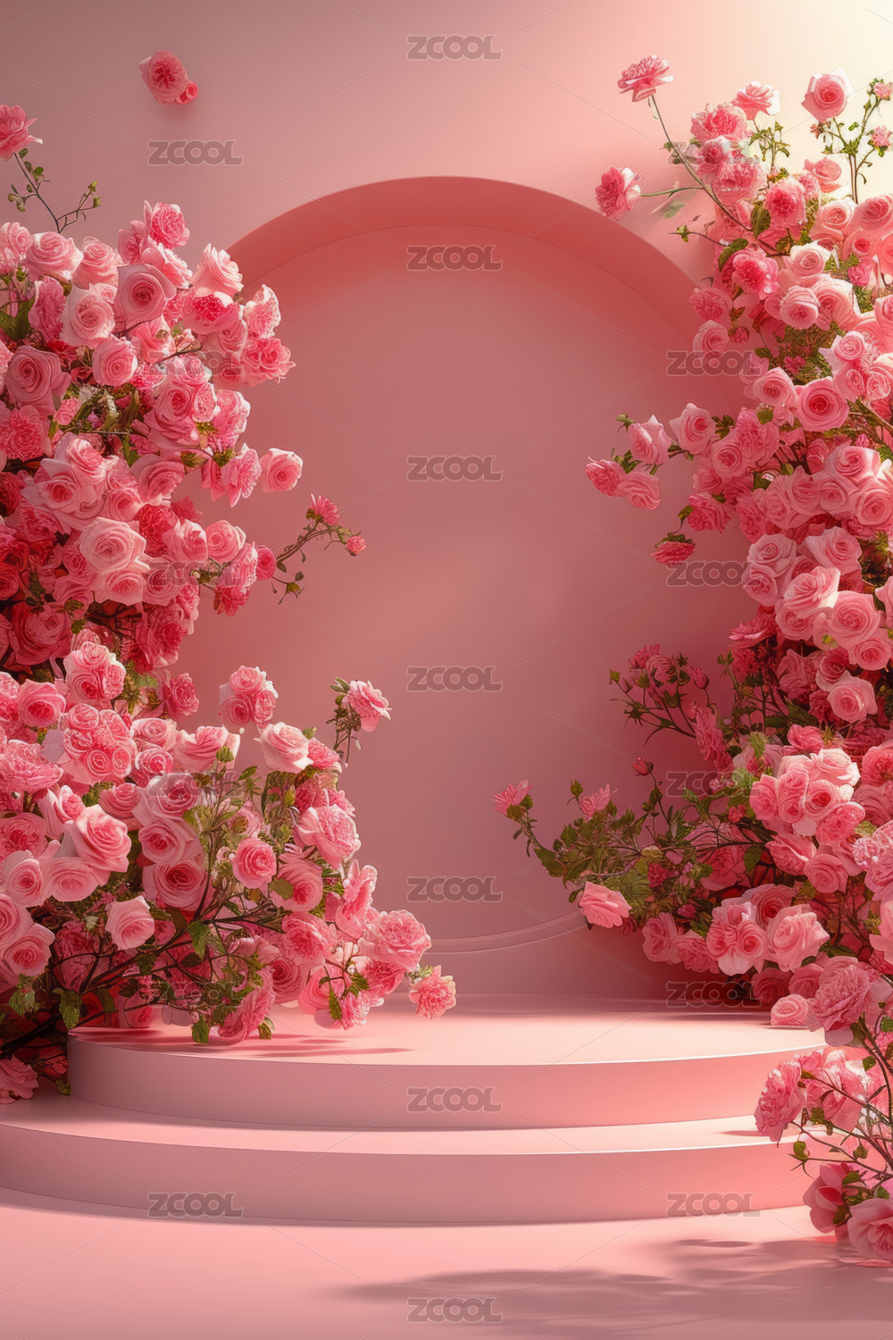 現(xiàn)代婚禮場景,綠色植物拼接背景