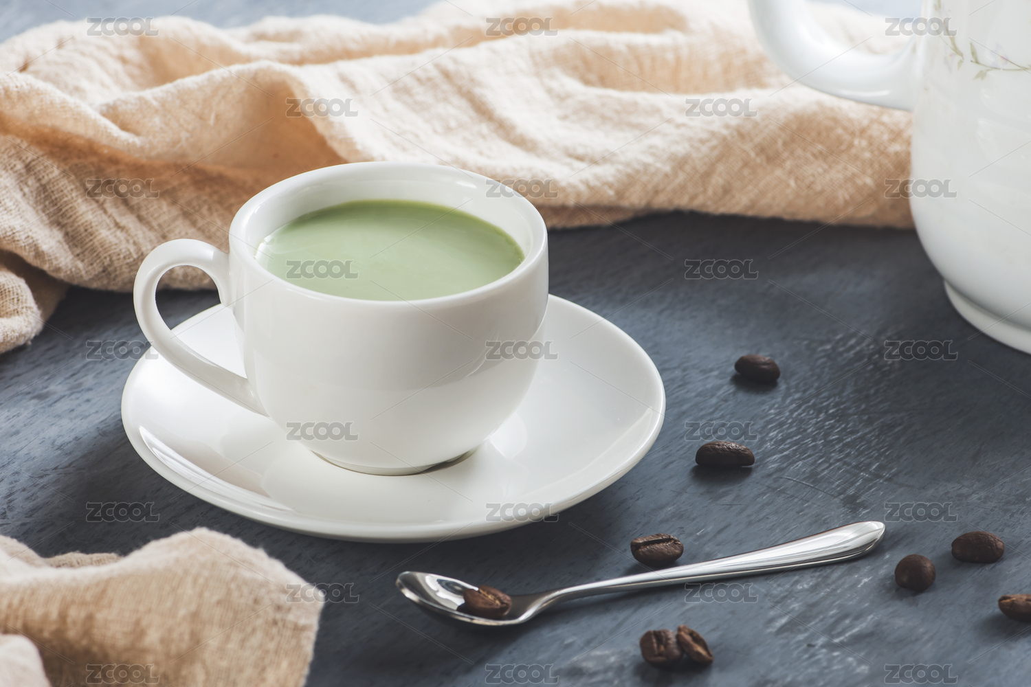 工業(yè)風格布景下的一大杯抹茶拿鐵