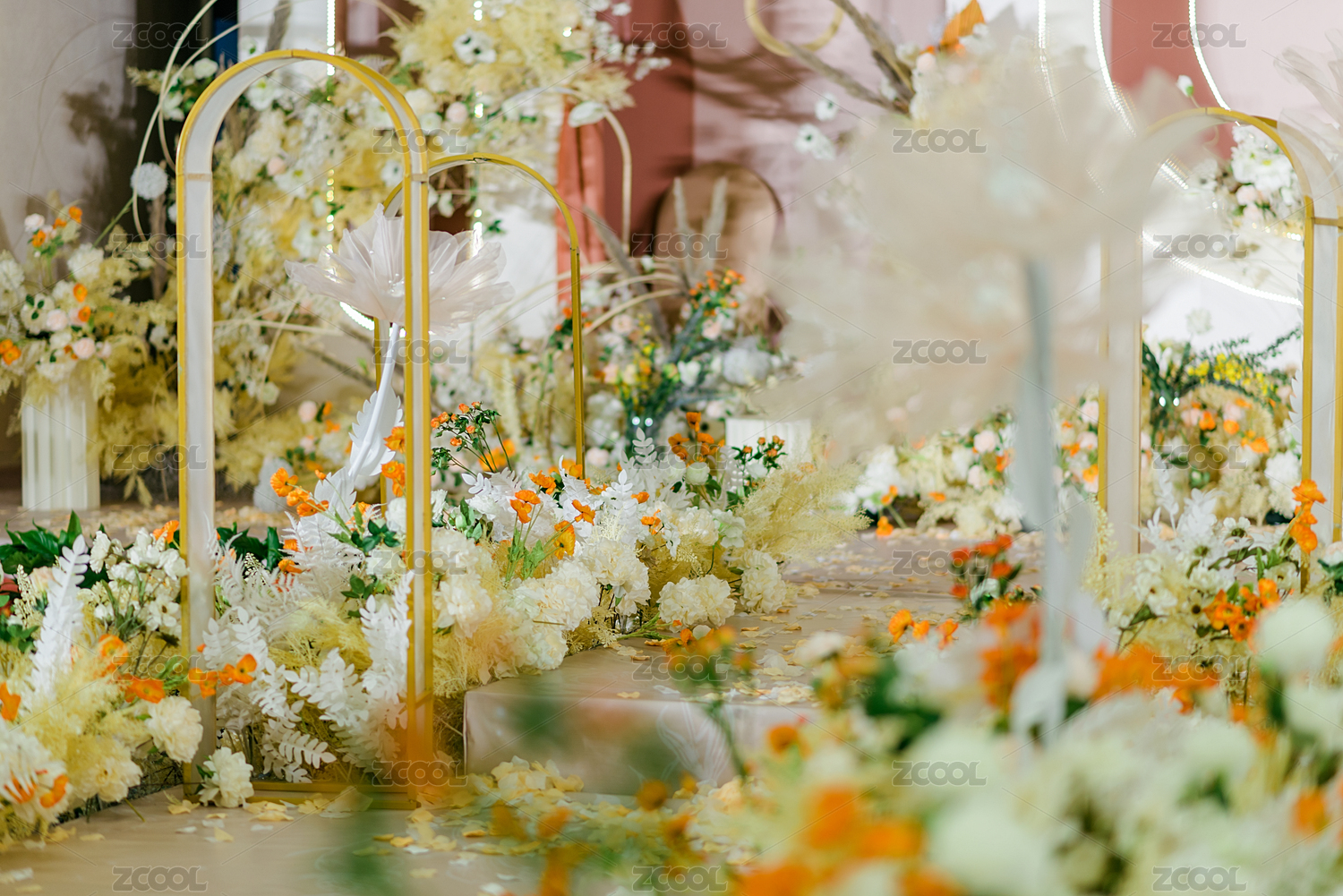 婚禮現(xiàn)場的精美裝飾布置和美麗花朵