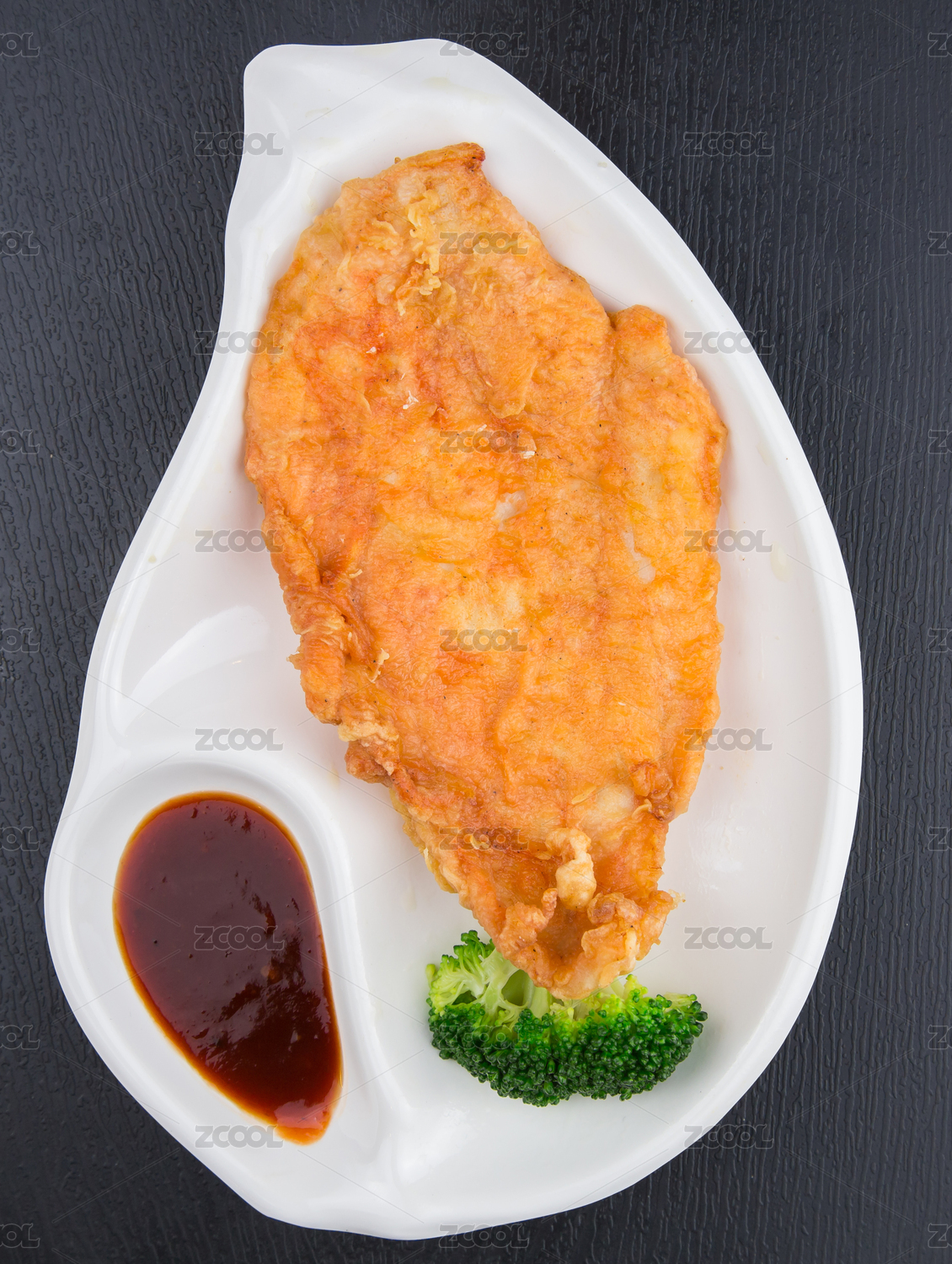 裝在圓瓷盤里的炸雞排套餐