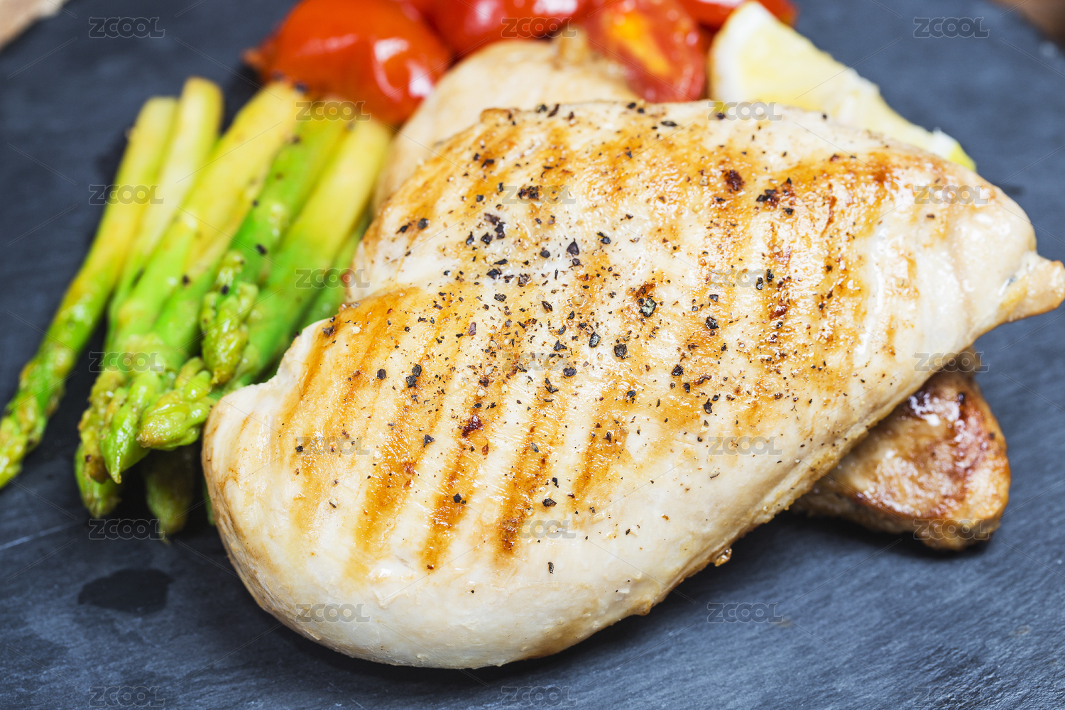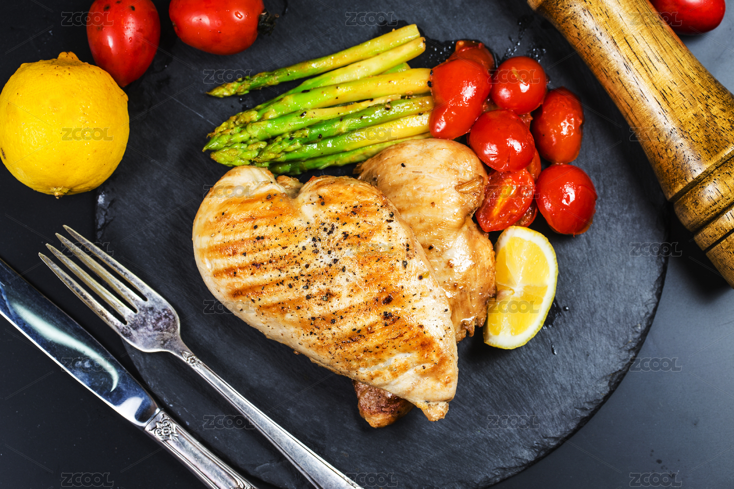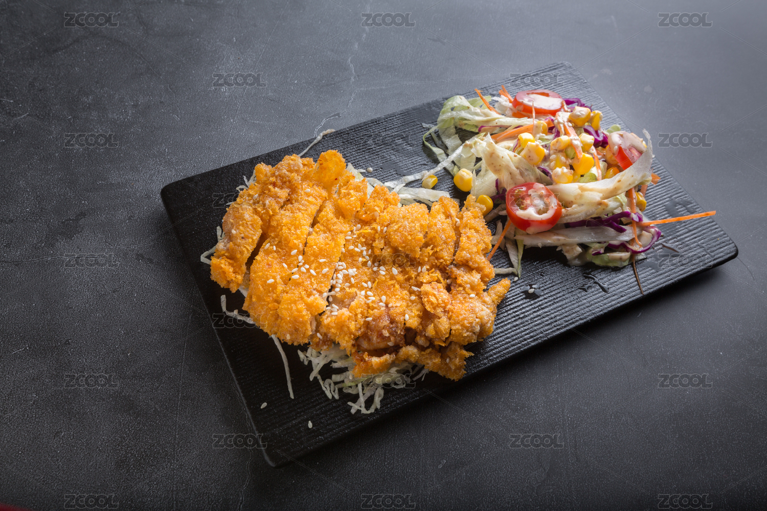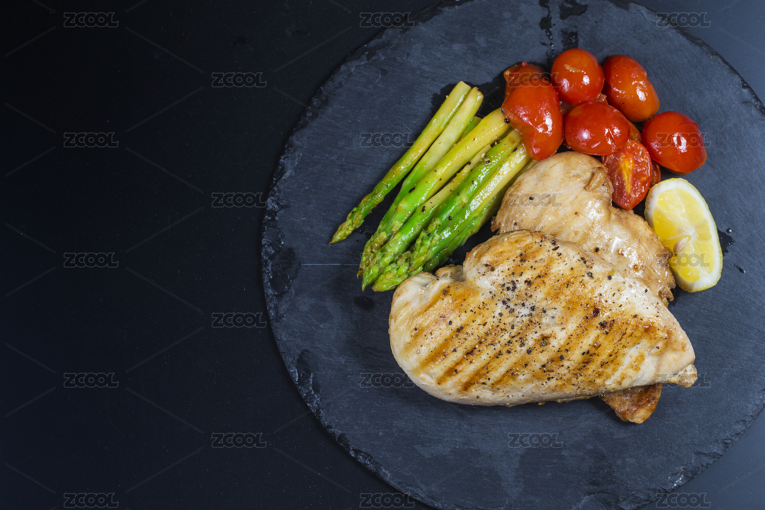 水泥桌面上的烤雞排套餐