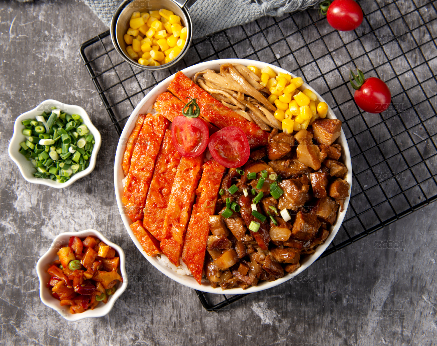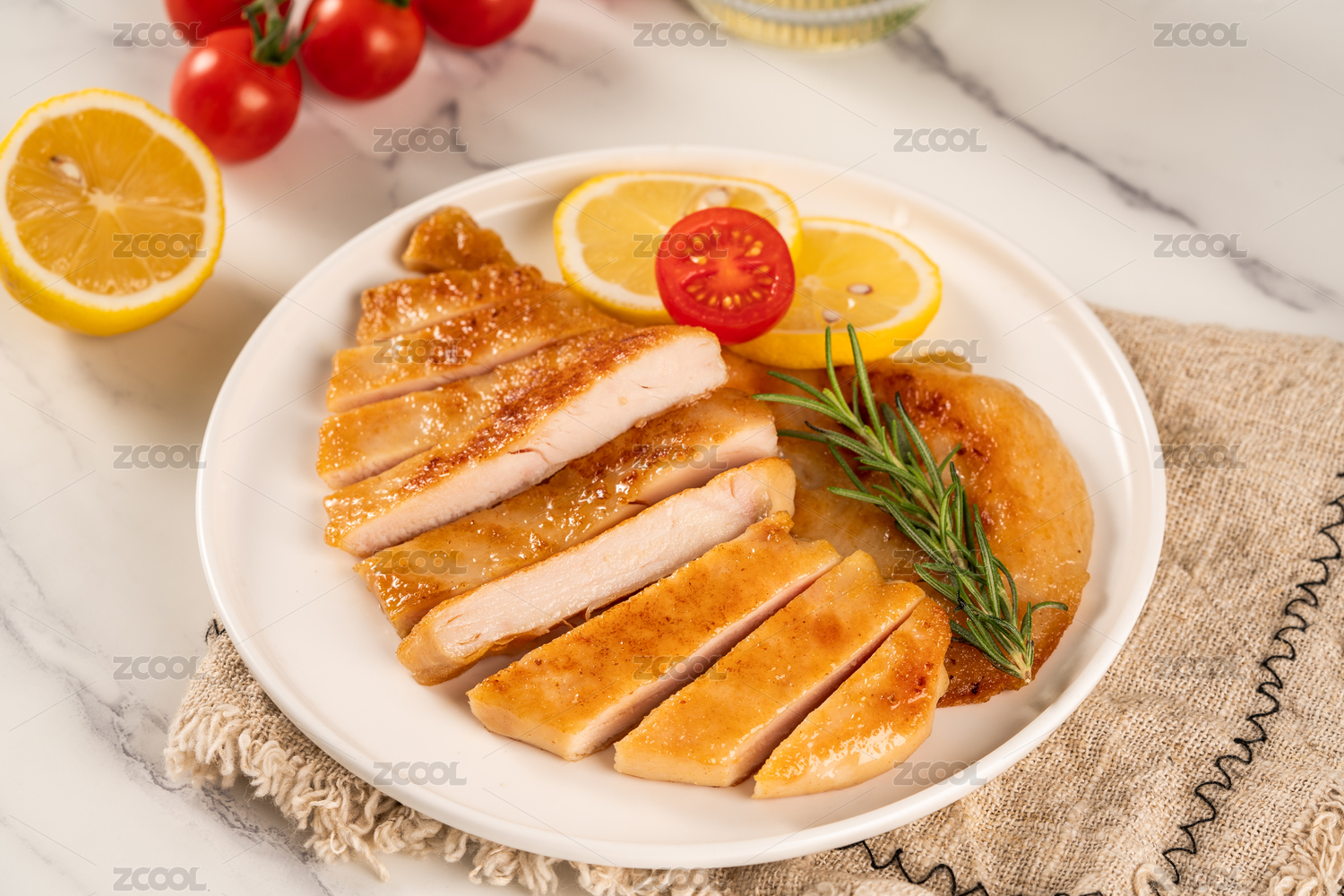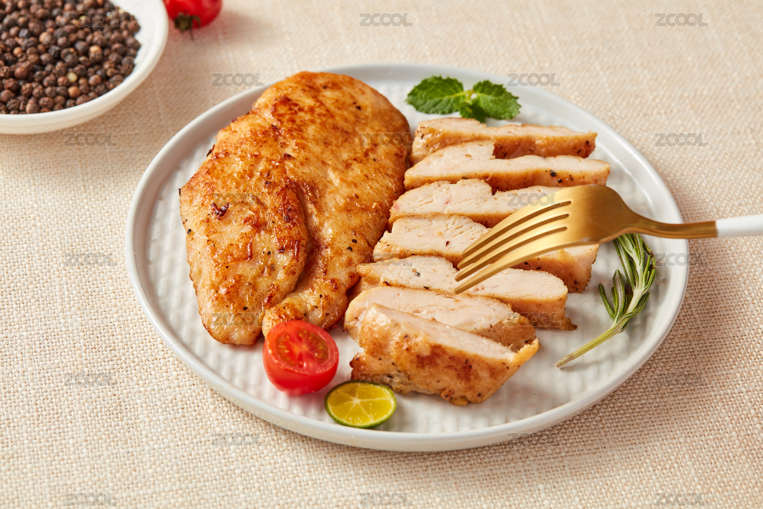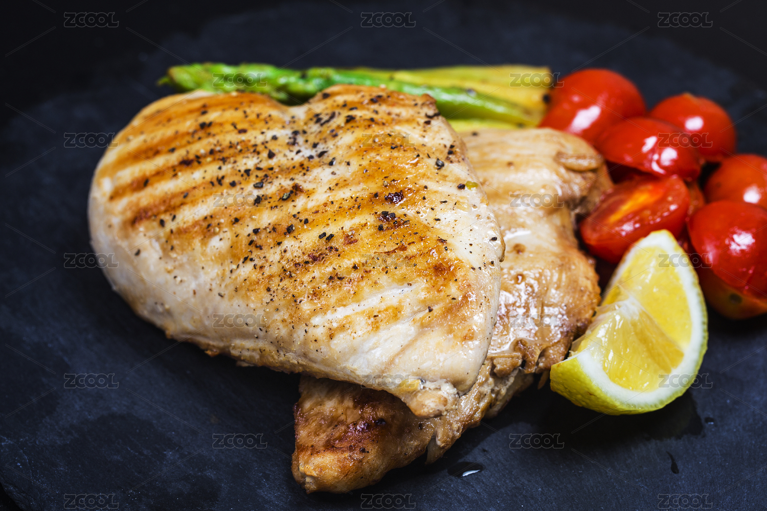 水泥桌面上的烤雞排套餐
