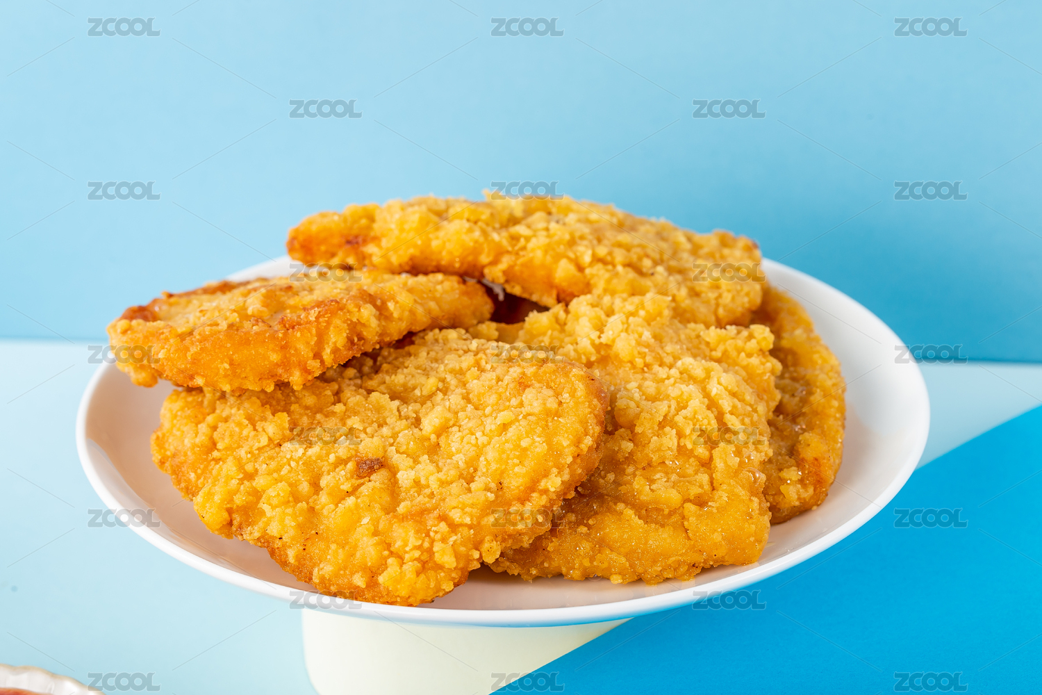 純色背景上滿滿一盤油炸雞排