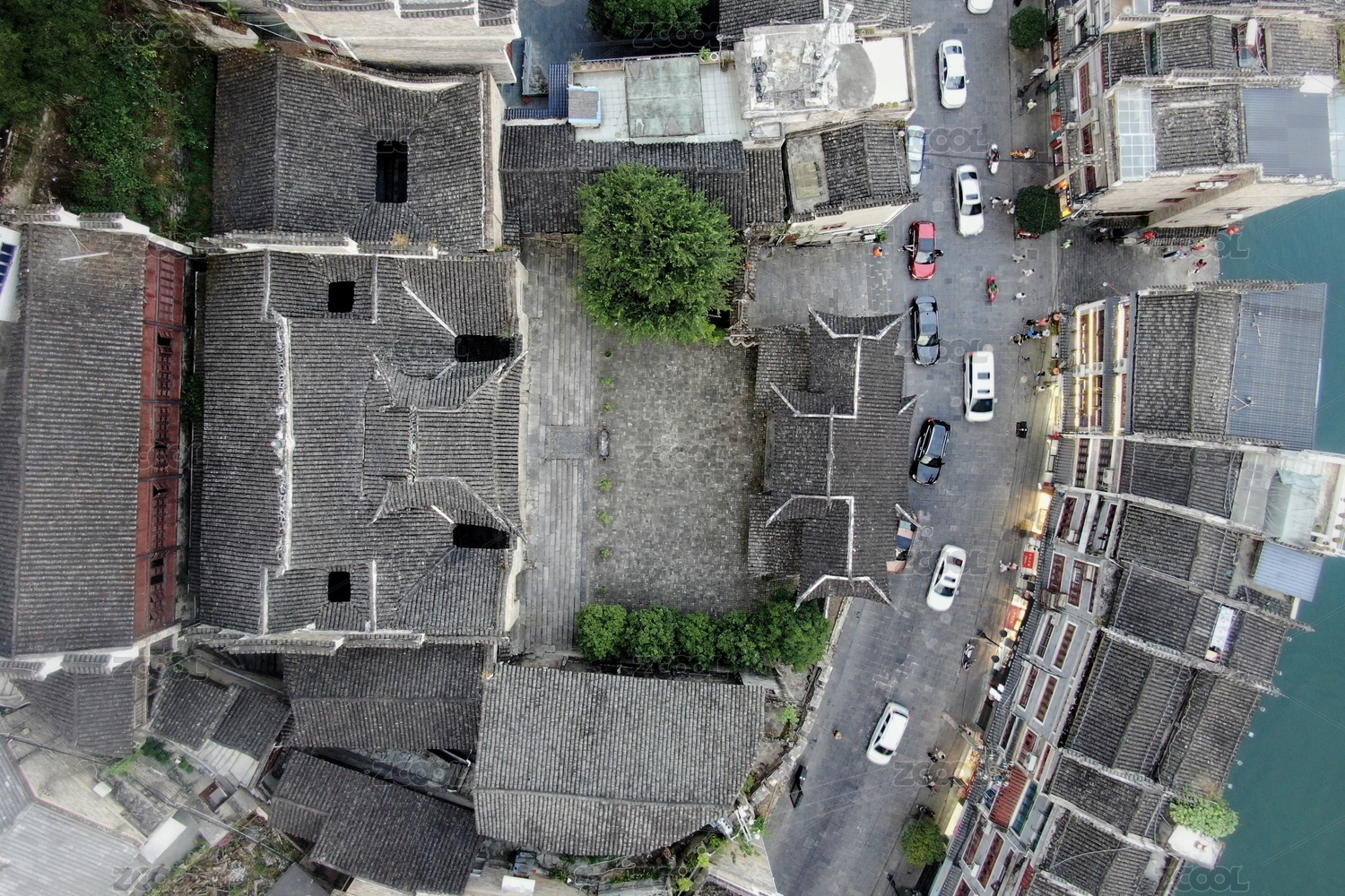 中國貴州省黔東南州鎮(zhèn)遠(yuǎn)縣鎮(zhèn)遠(yuǎn)古城航拍