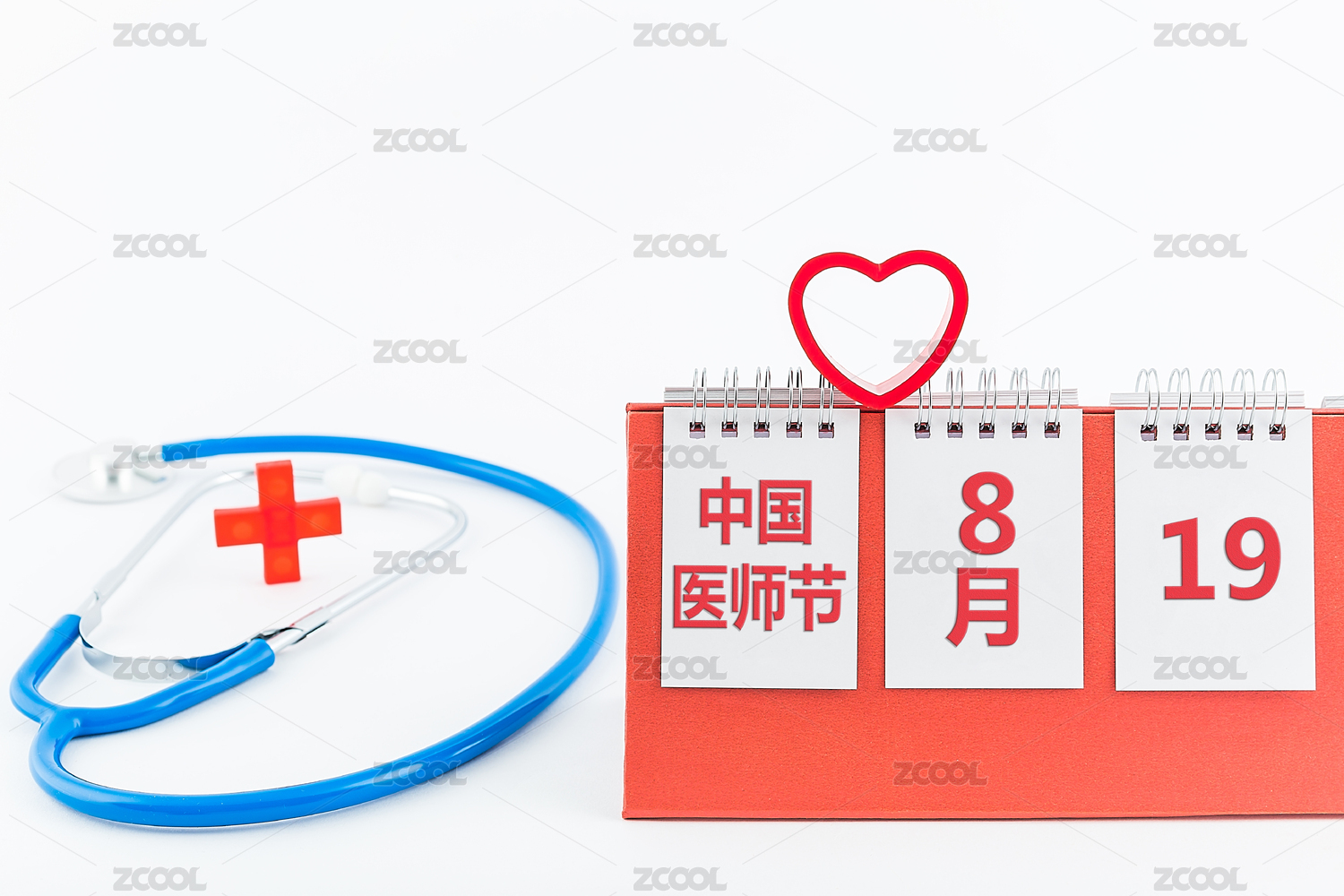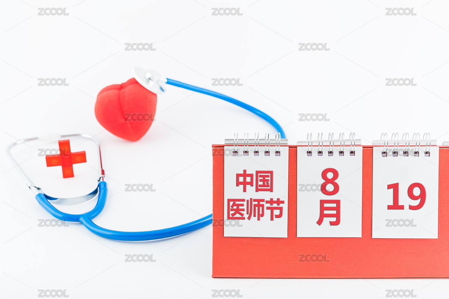 日歷和聽診器,中國醫(yī)師節(jié)主題圖片。