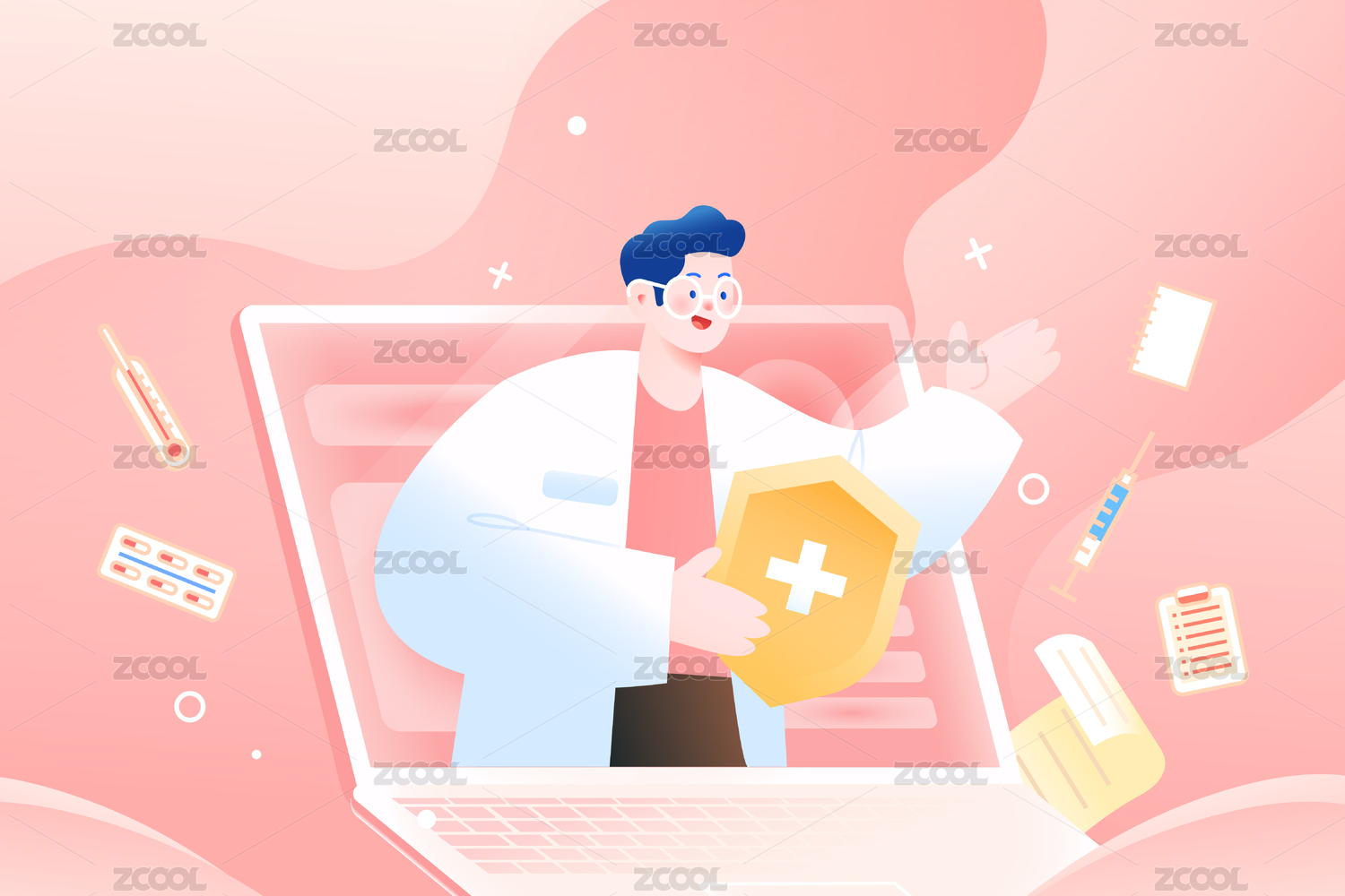 中國醫(yī)師節(jié)線上預(yù)約看診插畫