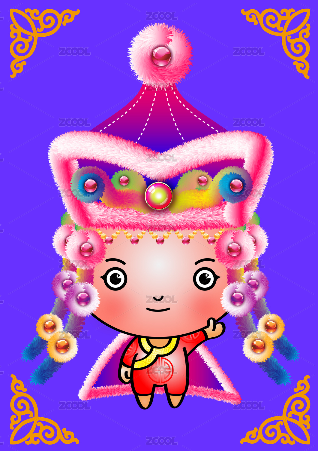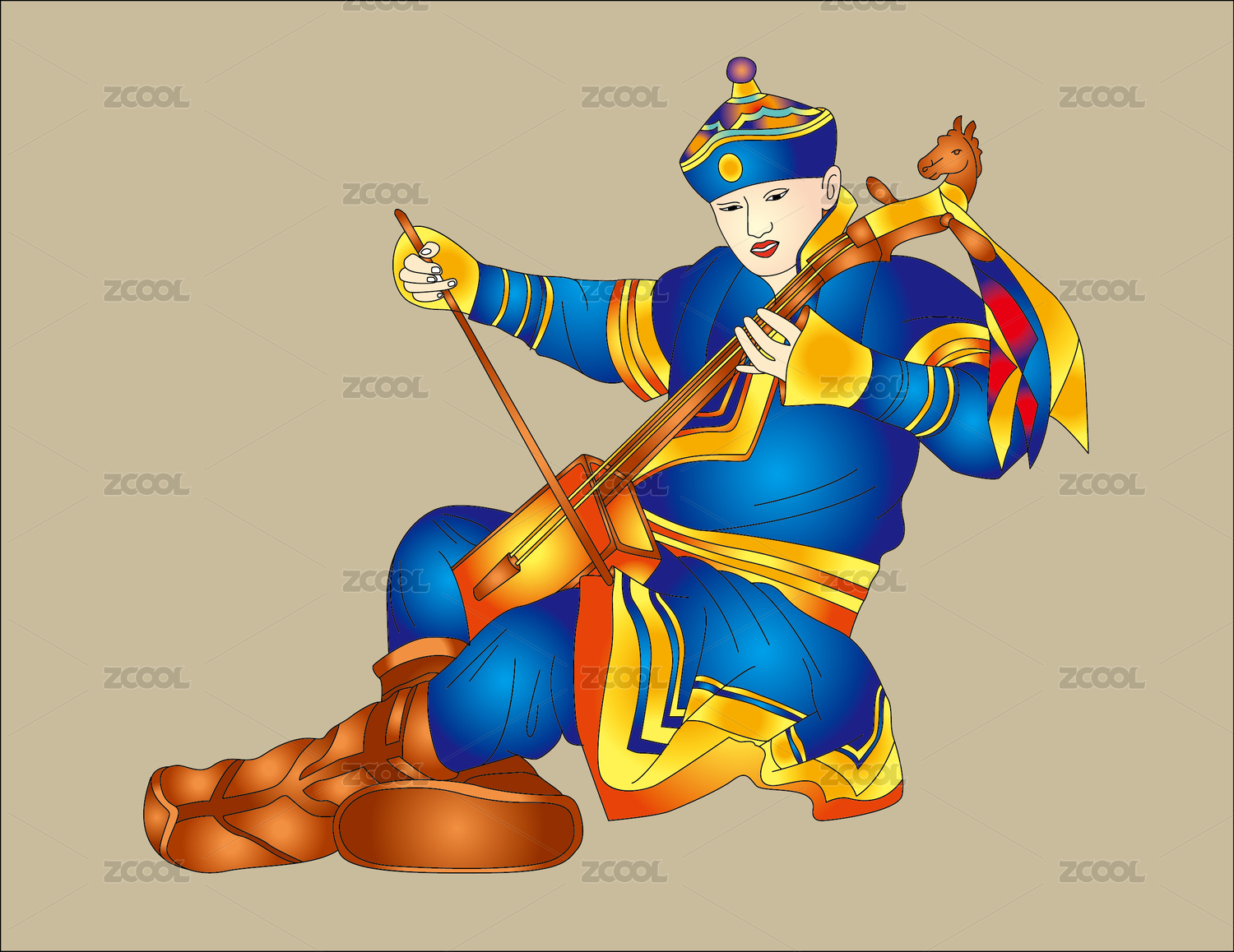 拉馬頭琴的蒙古族人物手繪矢量插畫(huà)