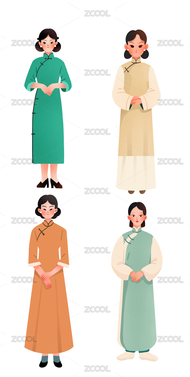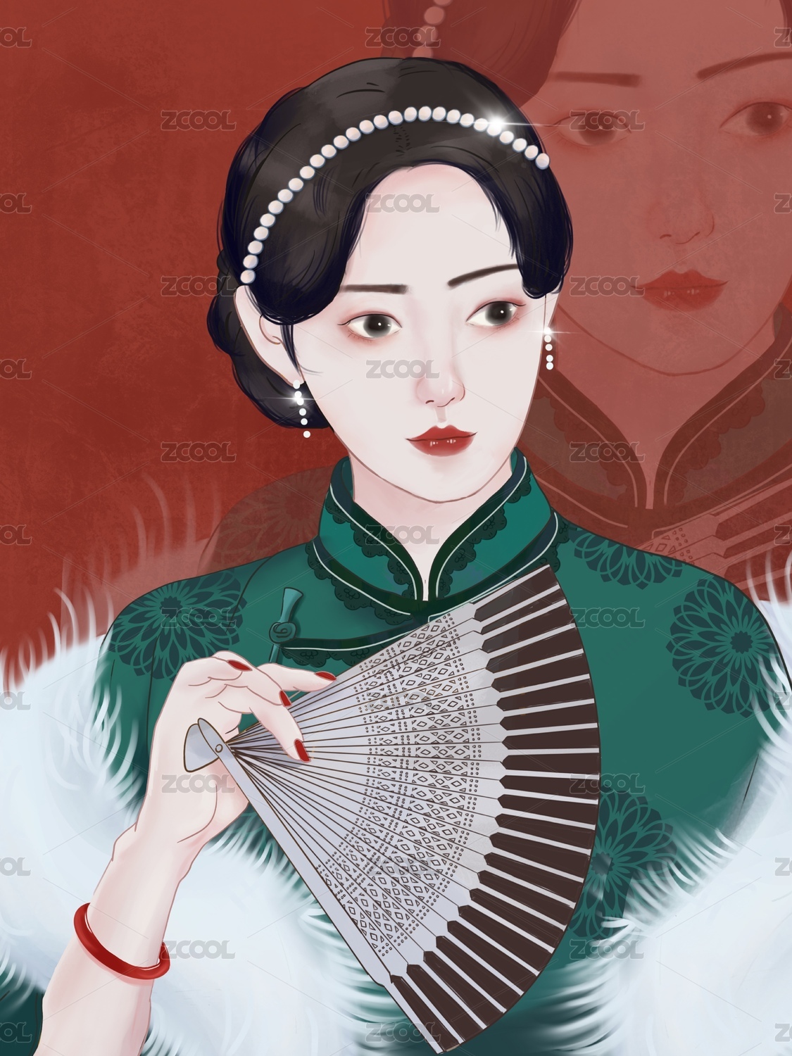婦女節(jié)復(fù)古旗袍精致人物手繪插畫(huà)