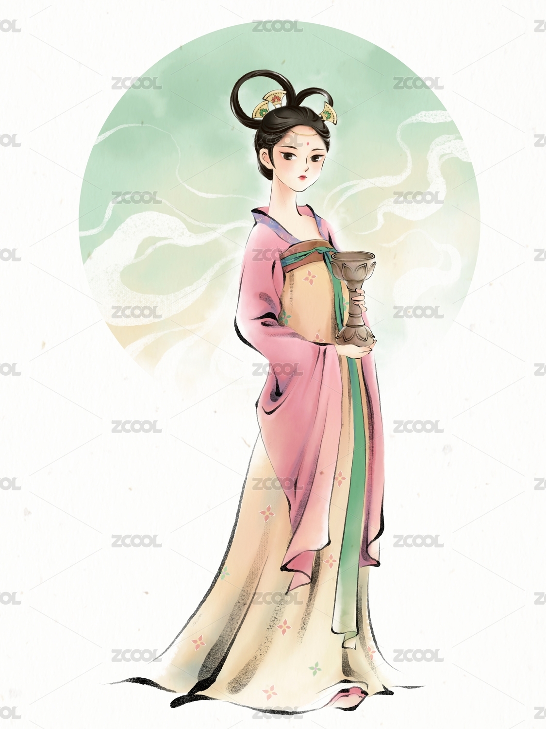 Q版古風(fēng)女性人物手繪插畫(huà)