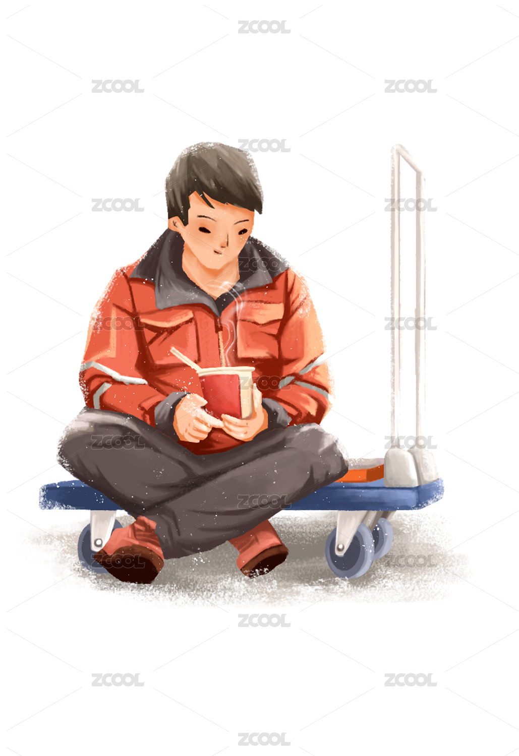 路邊吃泡面的快遞小哥人物手繪插畫(huà)