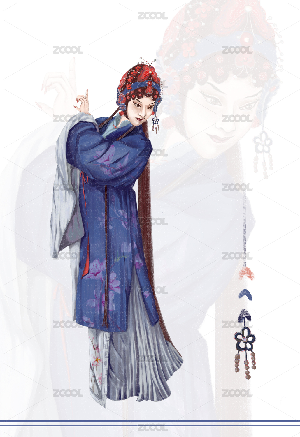 秦腔戲曲女性旦角正旦人物手繪插畫(huà)