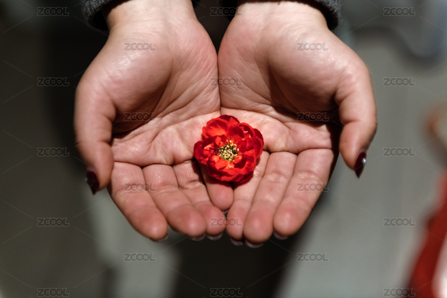 托在手掌上的紅色花朵
